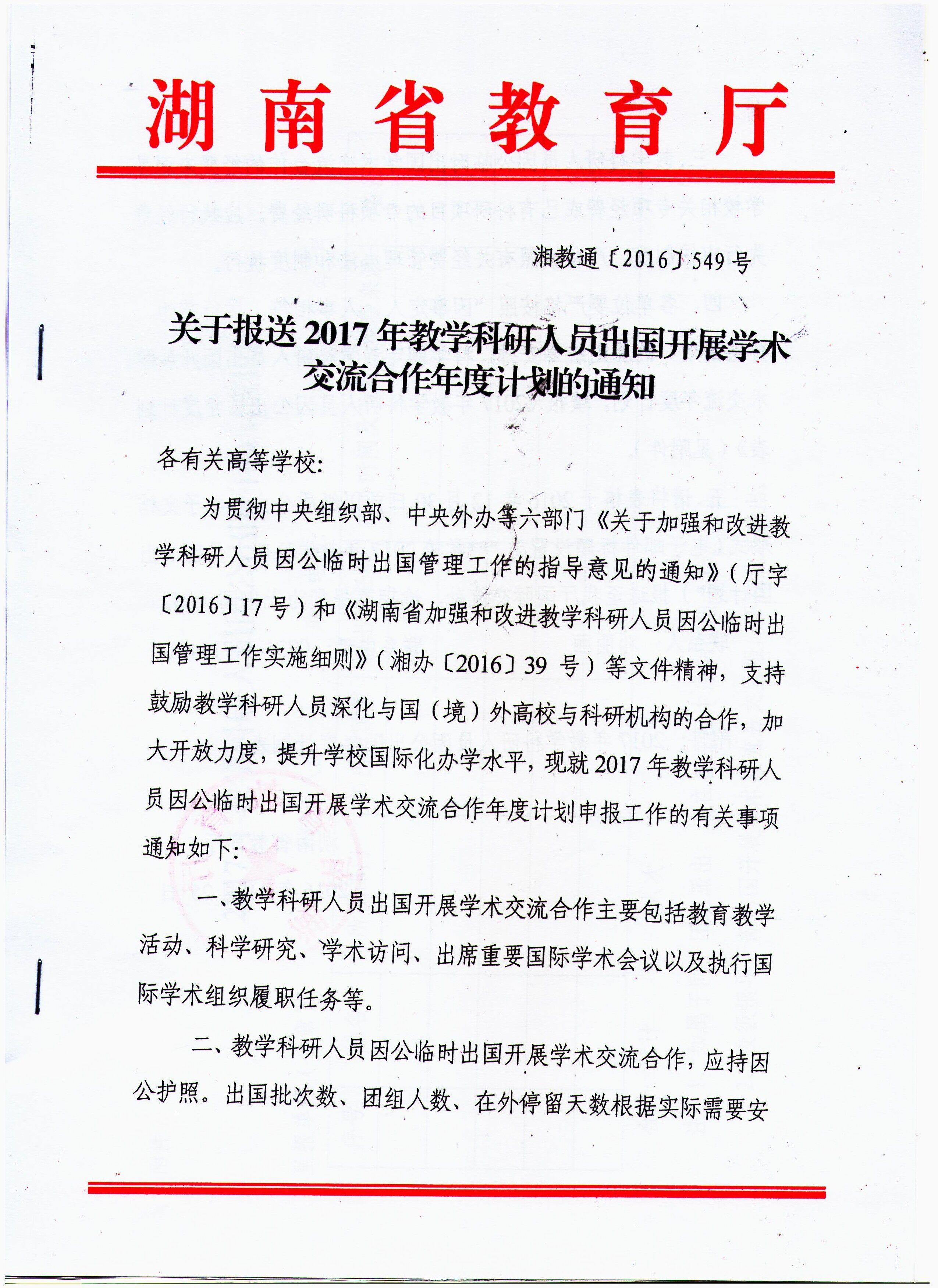 关于报送2017年教学科研人员出国开展学术交流合作年度计划的通知