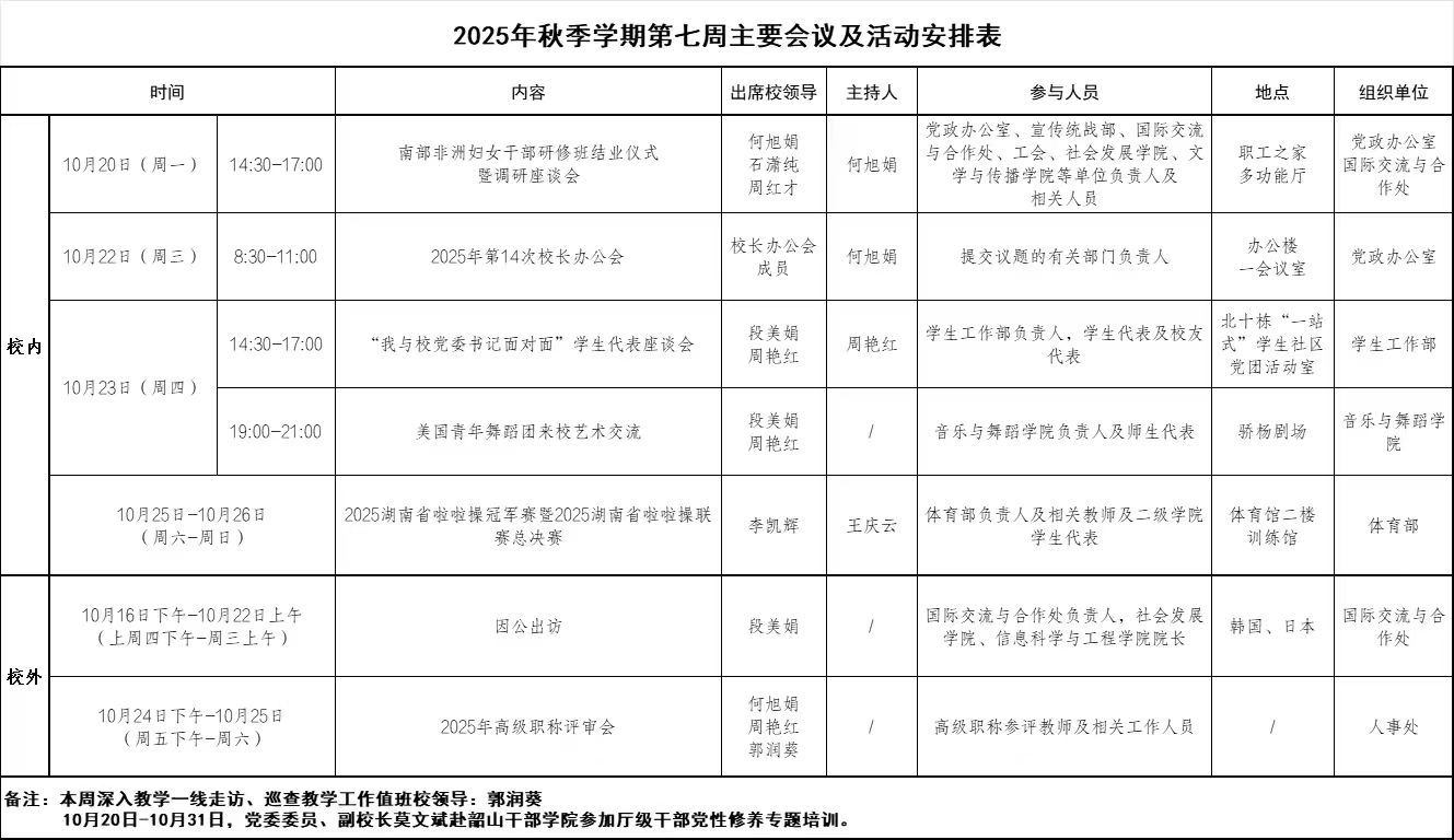 2025年秋季学期第七周主要会议及活动安排