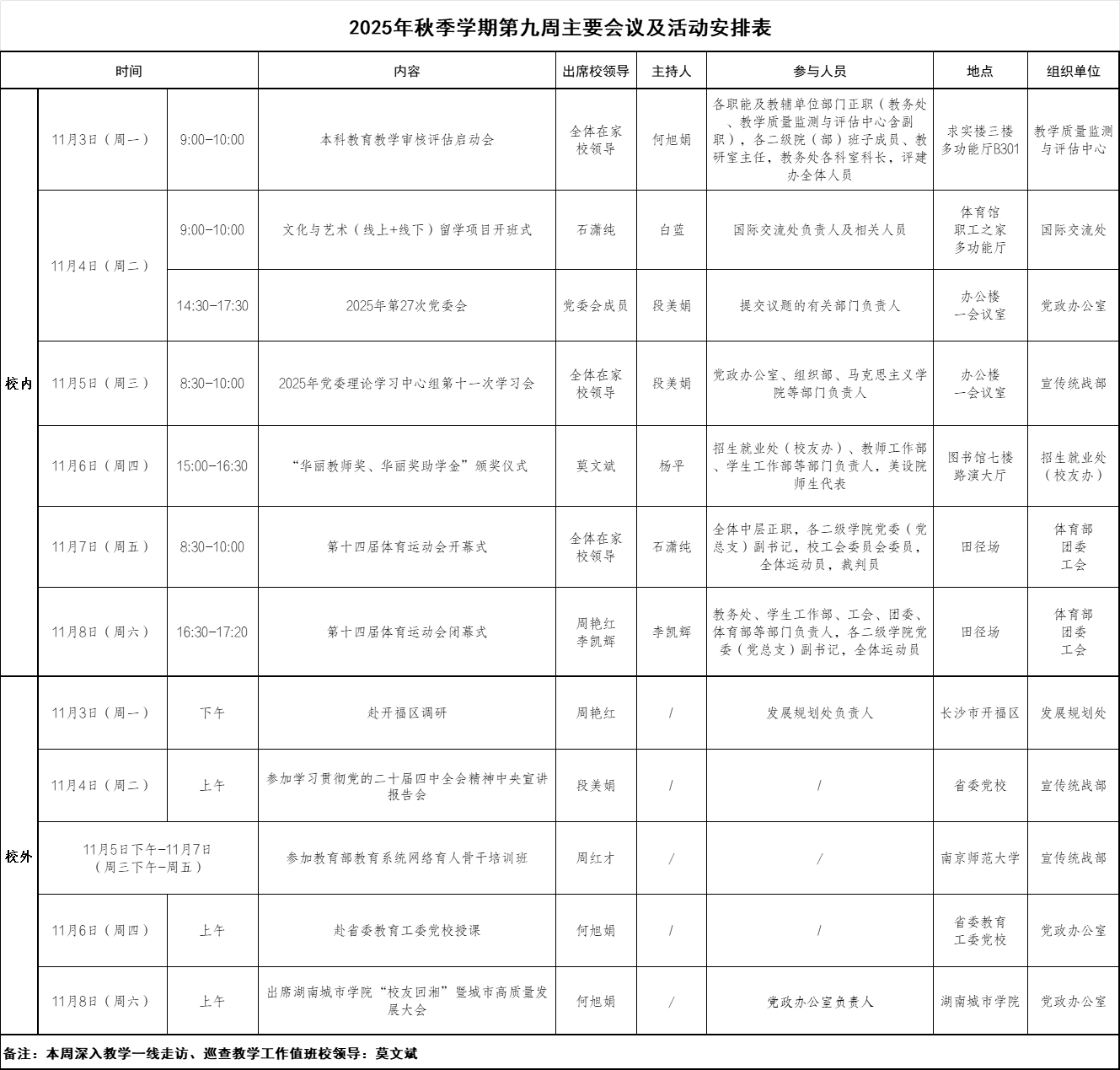 2025年秋季学期第九周主要会议及活动安排