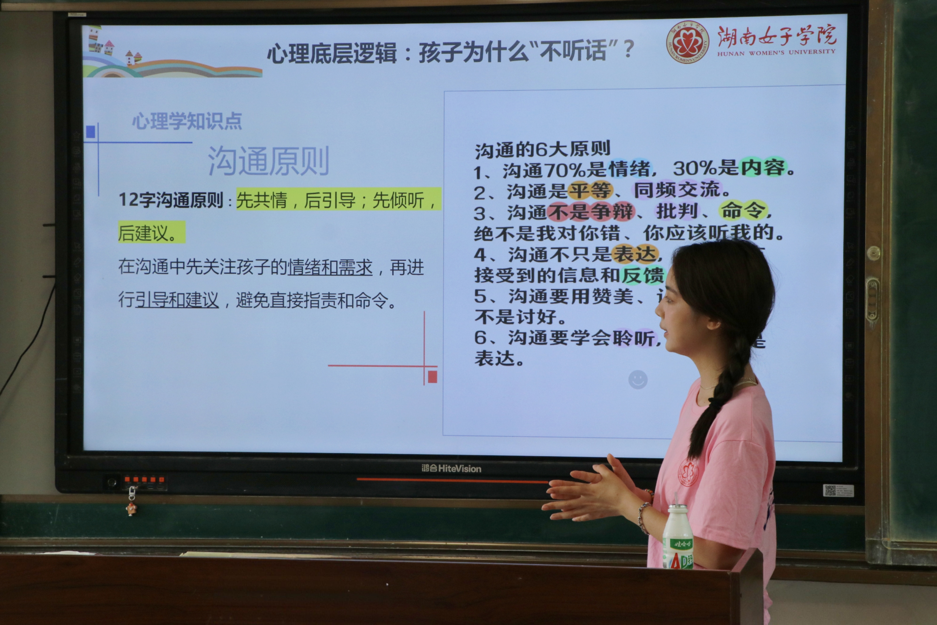 主讲人李思媛结合心理学理论和真实案例,深入剖析孩子内心密码,重点讲解了“一停二看三说”沟通急救法和“彩虹屁夸夸法”。由妈妈们进行角色扮演和角色互换,结合讲授的方法,进行模拟互动沟通,现场取得了良好的反响。同时实践团成员还分享了伟德官网“女性与家庭”教育中总结的“共情沟通法”“约定沟通法”等小妙招。刘妈妈捧着记满笔记的本子笑开了花:“这些法子一听就懂、一学就会,以后跟娃说话不愁啦!”
