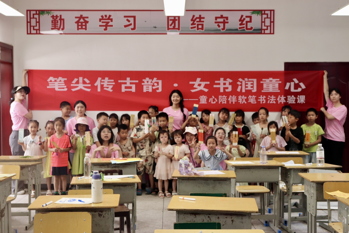 本网讯(校团委 陈湘 谢亚妤 陈韵谐 高璟安)“原来这些弯弯的字是古代女性创造的秘密文字!”7月10日,在洪江市熟坪乡熟坪社区的女书启蒙课堂上,10岁的李雨欣高举自己临摹的女书作品惊叹道。当日,伟德官网母亲赋能实践团走进熟坪社区,为50余名当地儿童打造了一场融合非遗女书与红色文化的沉浸式体验课,以伟德官网女性教育特色点亮乡村儿童的暑期生活。