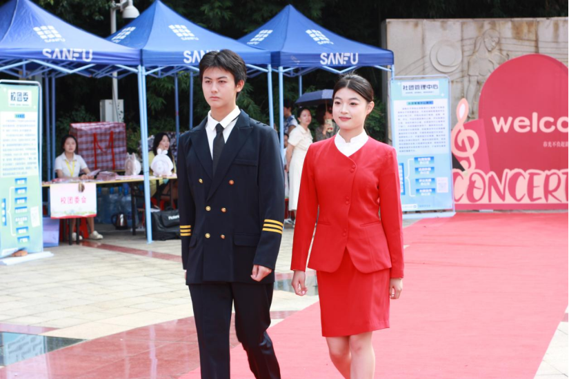 报到现场,身着统一蓝色战衣的“助辅团队”早已各就各位,现场秩序井然、环节流畅。学院还精心筹备了特色节目,让新生们提前感受专业魅力与校园活力。茶艺表演区,茶香袅袅,表演者手法娴熟地注水、冲泡,尽显传统文化韵味;专业走秀环节,空中乘务专业的学生们身着制服,步伐稳健、姿态昂扬,尽显旅航学子的风采。精彩的演出赢得了现场阵阵掌声,也让新生们对未来的校园生活充满期待。“从进校园开始,就有学姐一路帮忙,报到过程很顺利,心里特别暖!” 新生韩玉杰笑着分享入学感受,眼中满是安心与期待。