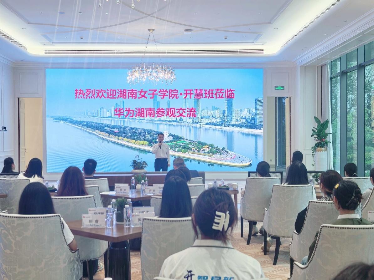 华为湖南人力资源部部长罗洋向师生们的到来表达了热烈的欢迎,鼓励师生们拥抱AI时代,敢想敢做;在专题交流环节,华为湖南教育行业解决方案专家苏杨介绍了研究所的运行机制与企业创新实践;华为认证部解决方案经理吴猛则分享了华为参与本地数智化转型、培养ICT人才等方面的成果。交流内容深入浅出,既有战略视野,又具实操案例,呈现了科技企业与地方发展同频共振的合作图景。
