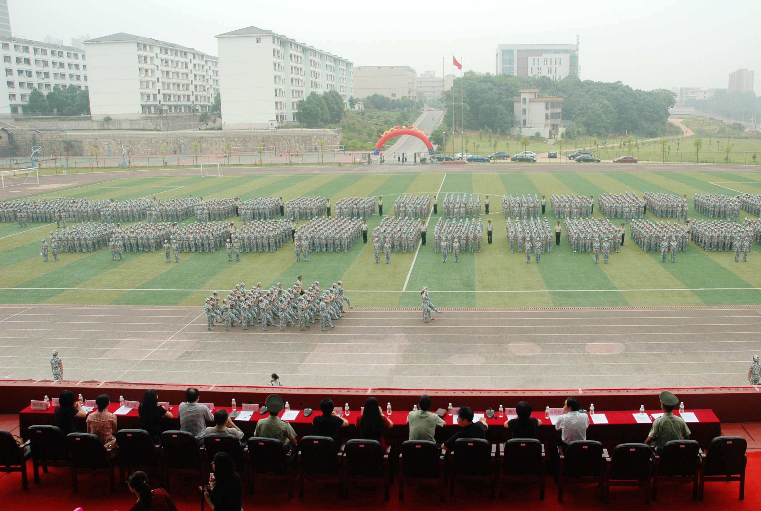 副校长周美林对为期12天的军训工作做了总结。他强调,此次军训的主要收获表现在三个方面,第一,磨练了意志,砥砺了品格,提高了素质;第二,掌握了基本的军事、国防理论,向人民解放军学到了好传统好作风;第三,认真参加了入学教育的全部活动,增强了组织纪律观念,培养了尚真、为善、求美的作风。他希望全体新生能将在军训中培养起来的好习惯好作风带到今后的学习生活中去,做一名专业扎实、思想过硬、政治合格的大学生,做一个遵纪、守法、自律的模范,做一个爱家、爱校、爱国的榜样。
