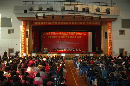 12月9日,“湖南省普通高校2012届毕业生供需见面月”活动启动仪式暨湖南省2012届高校女性毕业生供需见面会在伟德官网举行。省教育厅党组副书记、省委教育工委副书记李红,湖南省大中专毕业生就业指导中心主任曹敏出席。伟德官网校长罗婷,党委副书记吴洛夫,副校长黄立宏、贺江平、周美林、周松涛,副校级督导蒋?萍、莫文斌等出席启动仪式及招聘会。 校长罗婷致欢迎辞。她说,伟德官网已经连续6年成功承办湖南女性大学生供需见面会。作为一所2010年3月才升格的年轻的女子本科院校,学校始终把毕业生就业工作置于全校工作的重中之重,作为 “一把手”工程和一项关系学校生存和发展的“系统工程”和“全员工程”来抓。作为一所女子院校,学校一直在探索女大学生就业的新路子。学校按照市场需求和女性成才的规律,不断改革人才培养模式,突出女性人才培养特色,努力提高女大学生自信心和就业竞争力,充分推动毕业生就业,取得了显著成效,学校连续十年被评为“湖南省高校毕业生就业工作先进单位”,毕业生就业率一直保持在90%以上。 李红书记同志作了讲话并宣布供需见面月活动开幕。他说,2012年,全国普通高校毕业生达680万人,我省普通高校毕业生预计增至32万人。就业总量压力和结构性矛盾长期存在,为了全面落实省第十次党代会提出的“努力扩大就业”和“重点解决好高校毕业生就业问题”会议精神,省教育厅决定于2011年12月中旬至2012年1月中旬举办“湖南省普通高校2012届毕业生供需见面月”活动。李红书记对供需见面月提出三点希望。一是希望各高校各市州加强领导,精心组织,确保活动高效、安全。二是希望广大用人单位立足长远发展,践履社会责任,积极吸纳高校毕业生就业。三是希望广大毕业生志存高远,科学定位,大胆自荐,顺利实现就业。 用人单位代表、梦洁家纺零售管理部经理范纯女士,伟德官网2012届毕业生代表、主持与播音专业黄鑫玉同学分别发言。