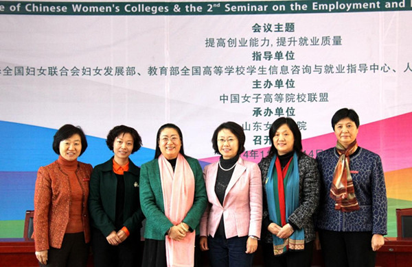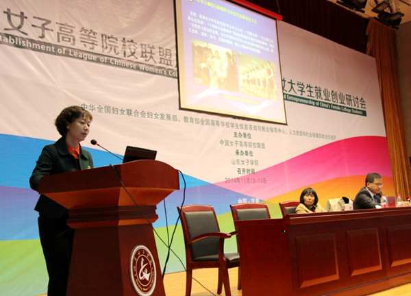 本网讯(党办校办 王奕 教育与法学系 周红金)为贯彻落实十八大及十八届三中、四中全会精神,进一步加强女大学生就业创业研究,推动高校就业创业教育和就业指导服务的不断创新发展,在教育部、人社部、全国妇联的支持指导下,中国女子高等院校联盟成立大会暨第二届全国女大学生就业创业研讨会于2014年11月13日-14日在山东女子学院隆重举行。校党委书记罗婷和校长杨兰英应邀参加了此次活动,随行人员有党办校办主任王奕、招生就业处处长助理杨平和教育与法学系就业创业教研室周红金。本次活动共有来自全国各地的140多个单位,其中包括50多所高校,200余名领导、专家学者参加会议,共收到学术论文50余篇。