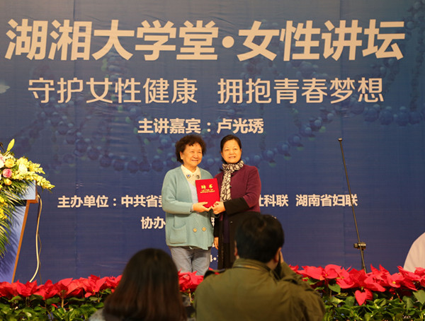 本网讯(党办 校办 杨亮)“我现在每天还能做100个仰卧起坐”。11月18日下午, 75岁的卢光琇教授此言一出,伟德官网体育馆内一片惊呼。作为湖湘大学堂•女性讲坛的主讲嘉宾,我国著名的遗传学与生殖医学专家卢光琇教授以“守护女性健康拥抱青春梦想”为题,讲授了有关女性健康和生殖保健知识。