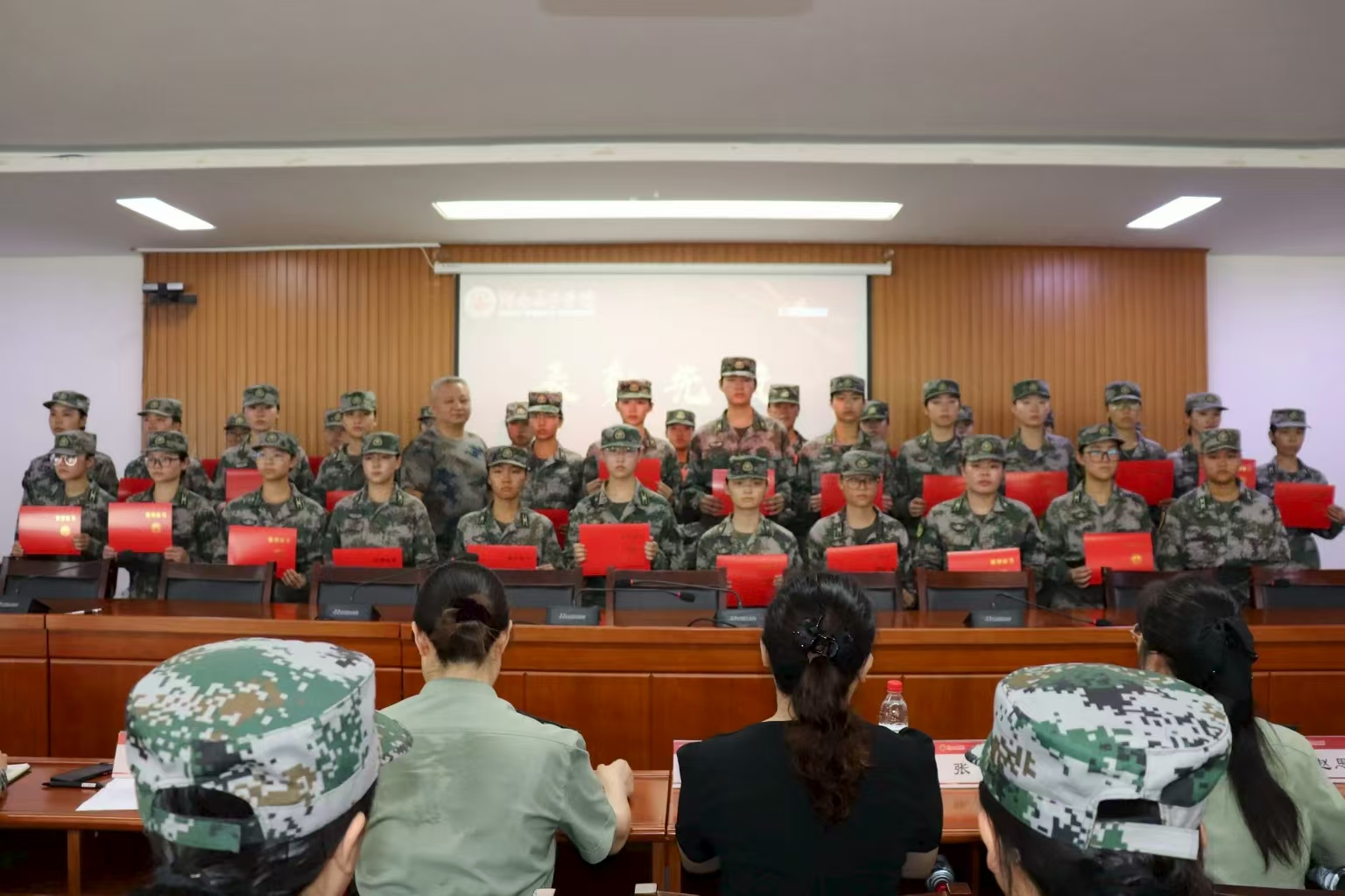 本网讯(学生工作部 陈 翊 苏贻美)7月3日上午,伟德官网自训队2025年春季学期总结表彰暨暑期强化集训动员大会在办公楼召开。集训总教官赵思琪、副总教官张雪和心理咨询师李明玉携集训队与补训队全体人员参加会议。副校长周艳红携学工部(武装部)部长刘利华、副部长张娟,国防教育办主任陈翊出席会议。会议由自训队管理部干事唐梢琳主持。