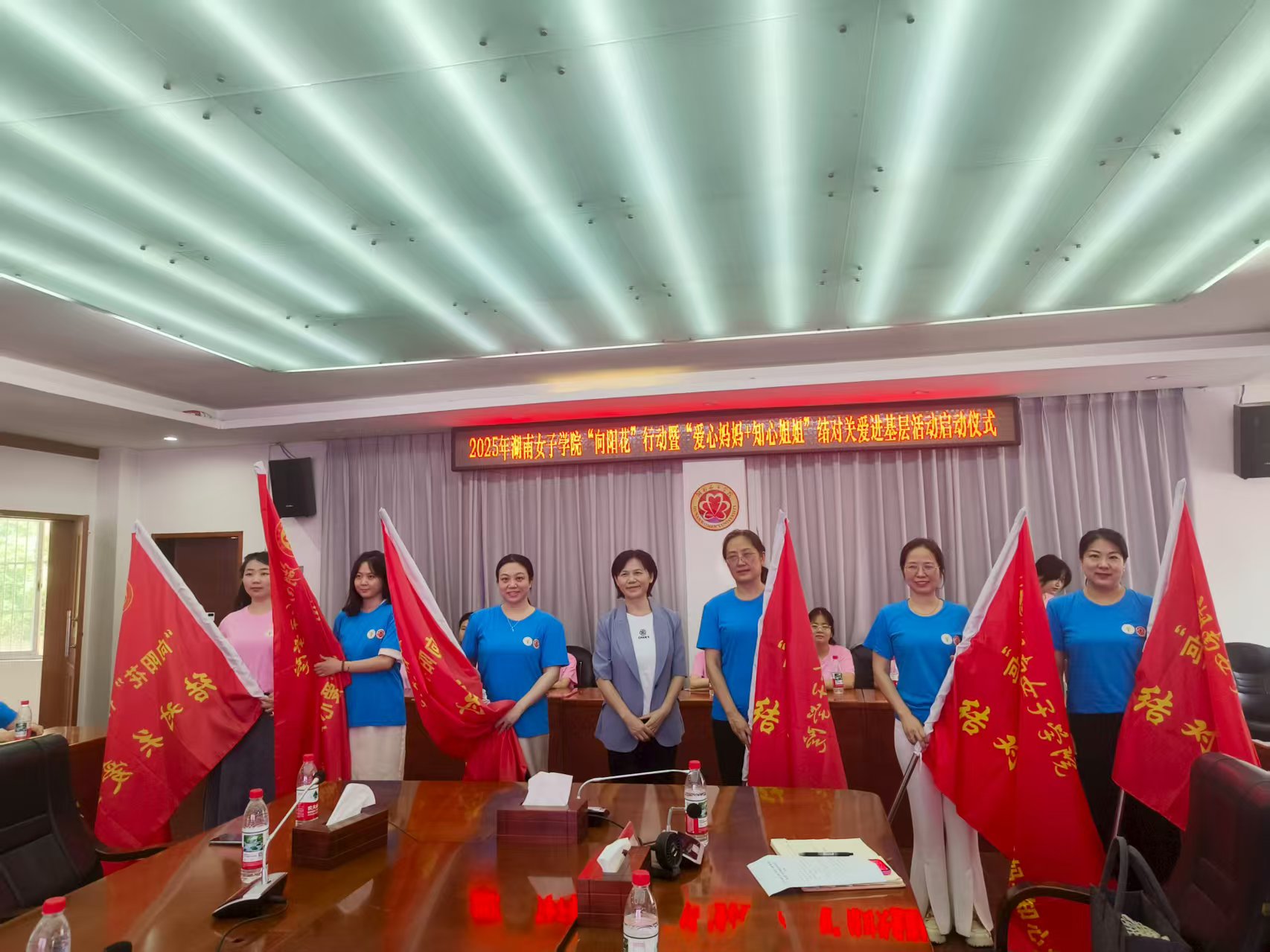 莫文斌为五个项目团队及学生青年志愿者团队授旗并讲话,她指出,“向阳花”行动不仅是一项公益举措,更是一场用爱浇灌成长的事业。她寄语“爱心妈妈”“知心姐姐”们:“要用母亲般的温暖、姐姐般的贴心,走进孩子的内心世界;各项目组要细化方案、注重实效,让每一次互动都成为孩子们记忆里的光,照亮他们的成长路。”