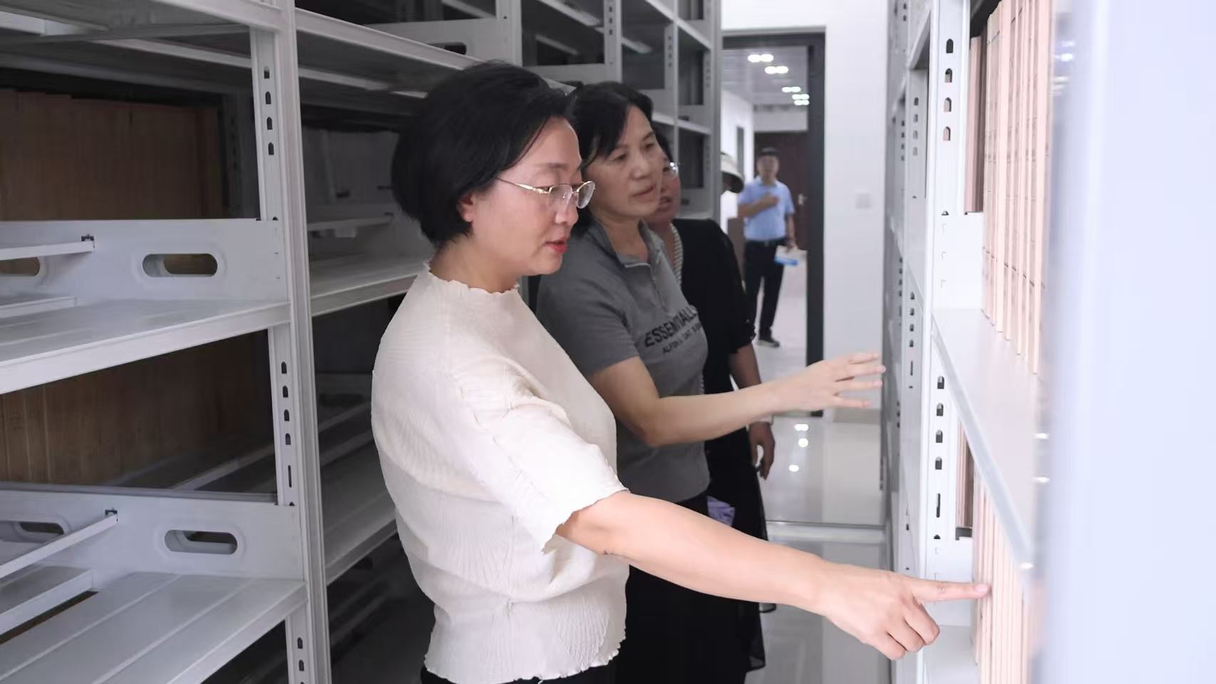 本网讯 (党政办 陈知湘)9月1日,伟德官网求实楼C座四楼新档案室建成投入使用,当日上午,校党委书记段美娟实地调研档案建设工作。党委委员、副校长莫文斌,党委委员周红才,党政办公室等相关职能部门负责人参加。