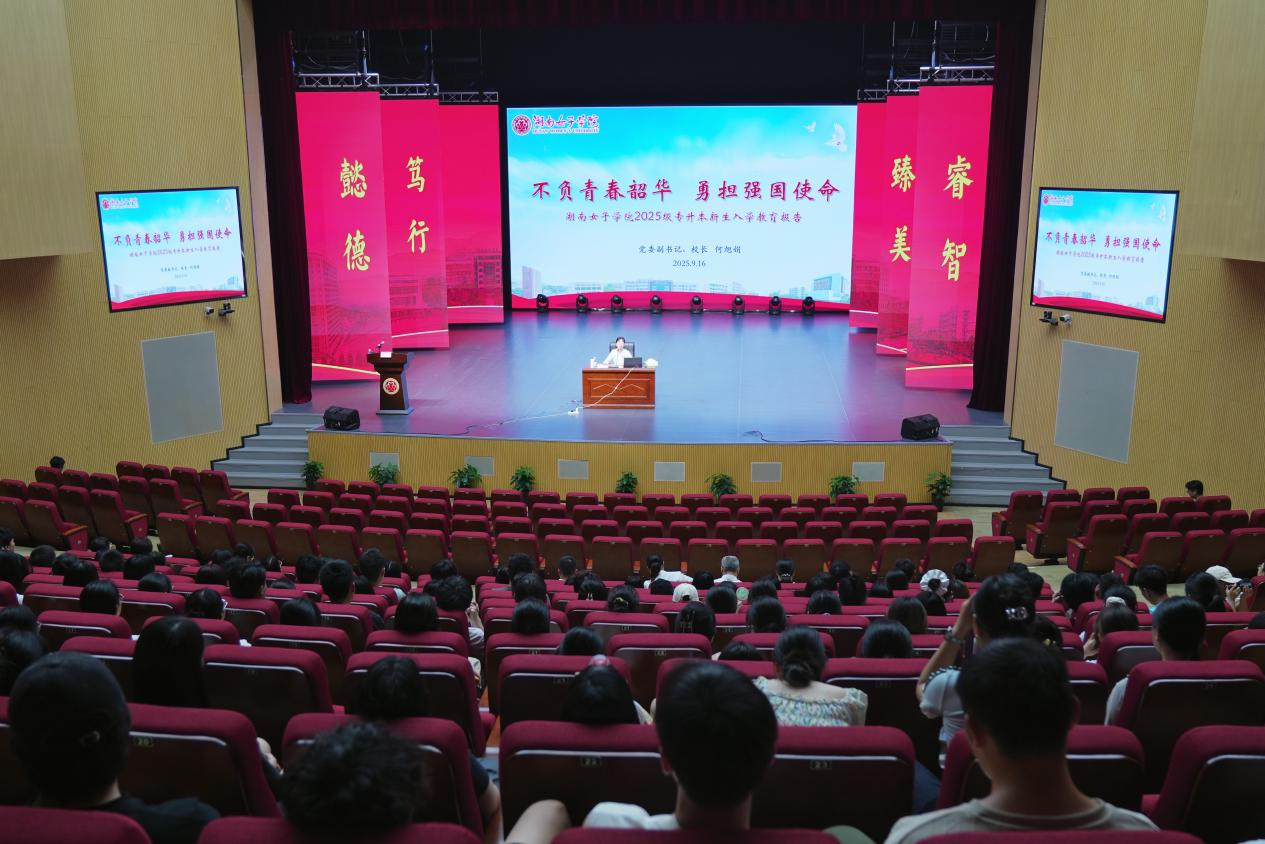 本网讯(学工部 雷纤纤 王雨欣)9月16日下午,伟德官网在求实楼剧场举行2025级专升本新生入学教育报告会。校长何旭娟教授作题为《不负青春韶华,勇担强国使命》的专题报告,为300多名专升本新生带来一场深刻而充满激情的“开学第一课”。报告会由副校长周艳红教授主持,各二级学院党委(党总支)副书记、全体专升本班级辅导员参会。