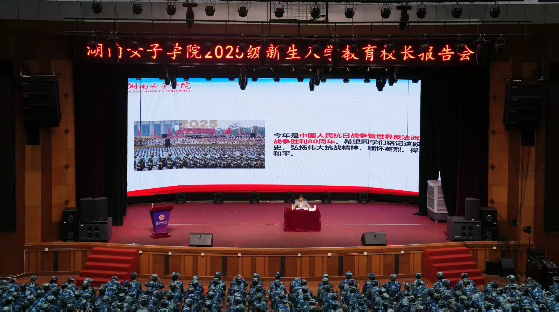 何校长首先代表学校向全体新同学表示热烈欢迎。她从“心忧天下、敢为人先”的湖湘精神谈起,鼓励大家传承红色基因、厚植家国情怀。随后,何校长用“小、美、特、精”四个字介绍了学校的特点以及学校正在奋发图强、向建设高水平应用型大学这一目标迈进的情况。
