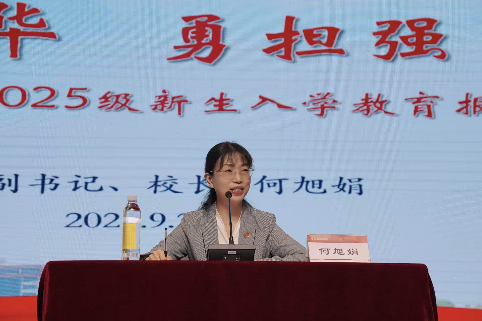 何校长指出,面对世界百年未有之大变局,立足以中国式现代化全面推进中华民族伟大复兴这一新征程,同学们应牢记习近平总书记对大学生提出的“四个正确认识”,自觉做到明大势、担大任。她向新生提出四点期望:一是明确发展目标,树立远大理想,做好学业规划与职业准备;二是善于学习思考,转变学习方式,主动探索、跨界融合,提升数字素养与阅读能力;三是勇于创新创业,将专业知识转化为解决实际问题的能力,在团队协作中锻炼综合素养;四是实现全面发展,养成健康的生活、运动、劳动习惯,积极践行社会主义核心价值观,成长为德才兼备的时代新人。最后,何校长勉励同学们自觉践行习近平总书记对青年大学生的殷殷嘱托,不负青春韶华,勇担强国使命。