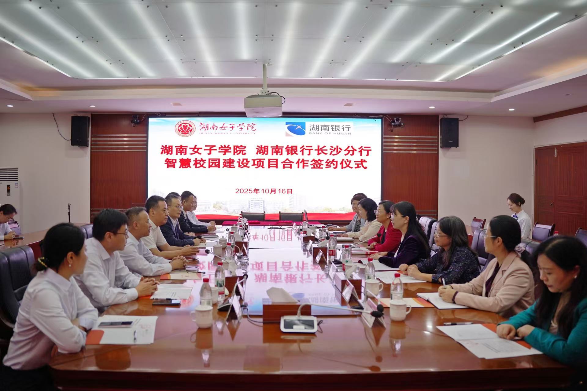 本网讯(财务处 谭美)2025年10月16日上午,在全球妇女峰会胜利召开,习近平主席发表《弘扬北京世妇会精神 加速妇女全面发展新进程》重要讲话之际,BV伟德官方网站与湖南银行长沙分行举行银校合作签约仪式,以数字赋能女性发展,以实际行动贯彻落实全球妇女峰会精神。湖南银行党委书记、董事长黄卫忠,校党委书记段美娟,党委副书记、校长何旭娟,副校长石潇纯,党委委员、副校长李凯辉等双方有关负责人参加签约仪式。仪式由何旭娟主持。