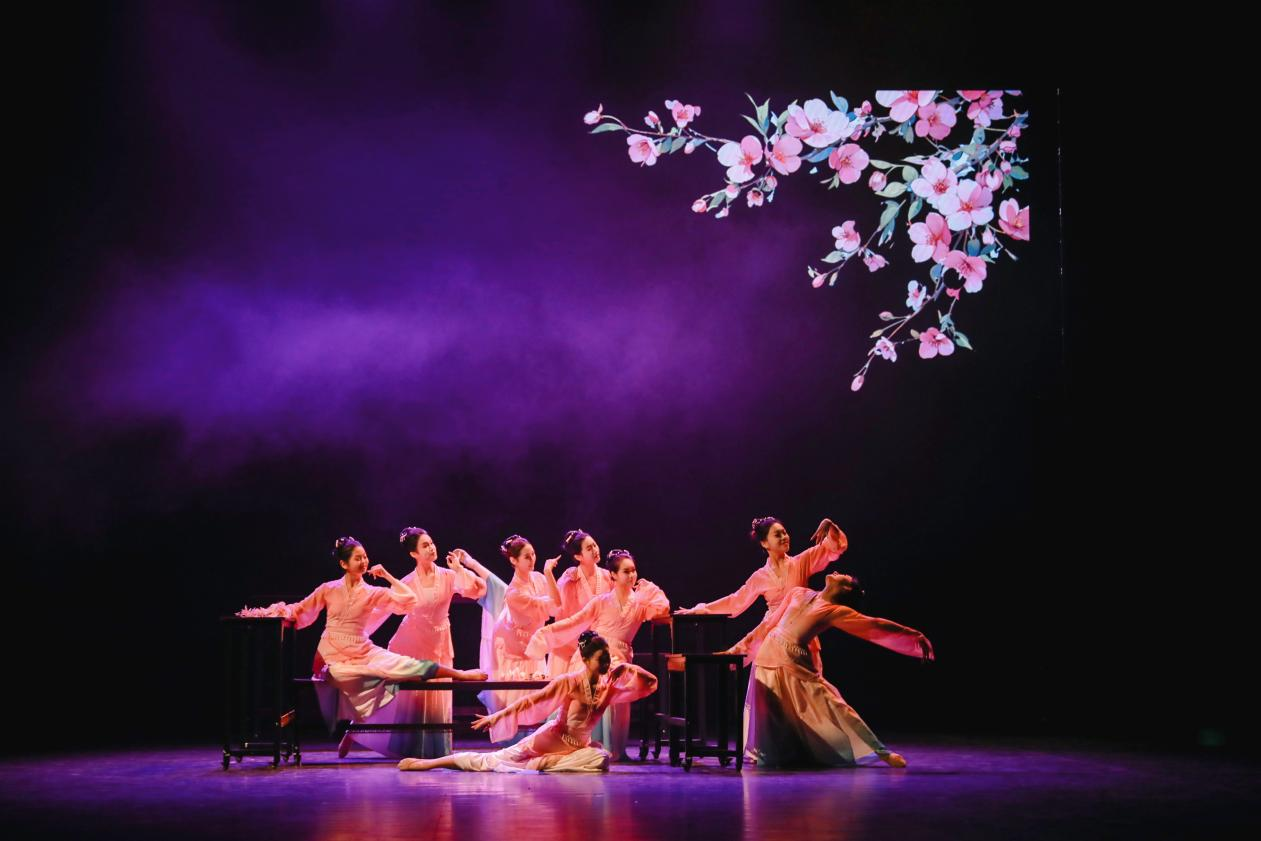 篇章聚焦育人成果与校园生活的丰富多彩。校工会校友合唱团倾情献唱《我的深情为你守候》,悠扬的歌声表达了校友对母校的深深眷恋与祝福。体育部带来的《活力青春》,由校友与学生同台,以动感十足的啦啦操表演展现了女院学子昂扬向上的精神风貌。音乐与舞蹈学院的琵琶重奏《古城弦韵》,师生共同登台,展现中华传统弹拨乐器的独特魅力与艺术风采。