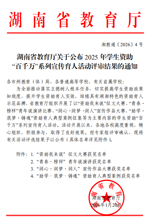 (图:湖南省教育厅 责任审核人:刘利华 tsxxywllh202601261150)