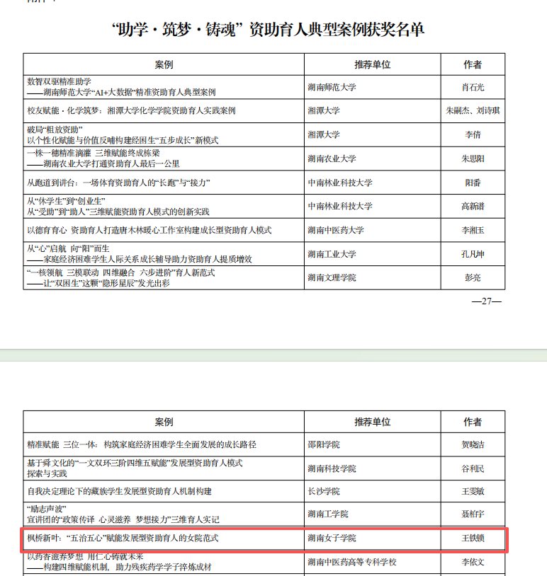 本网讯(学生工作部 李馨)近日,湖南省教育厅公布2025年学生资助“百千万”系列宣传育人活动评审结果,伟德官网师生在多个赛事中脱颖而出,不仅收获5项单项荣誉,还同时获评“青春・榜样”青年说演讲活动和“润心・润梦・润人”宣传作品大赛2个优秀组织奖,充分彰显了伟德官网资助育人工作的特色成效与组织统筹能力。