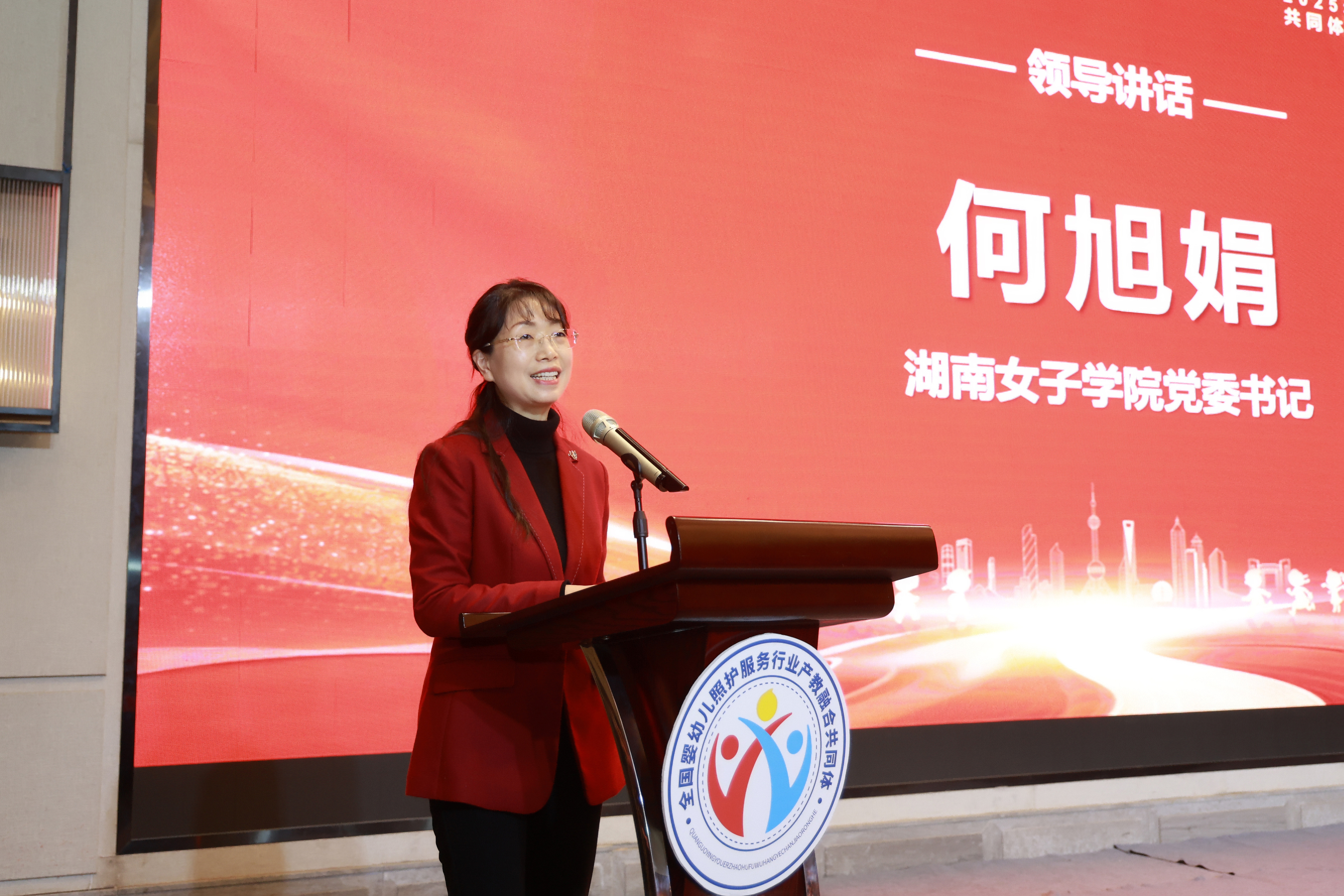 本网讯(社会发展学院 成雁瑛)2026年2月3日上午,全国婴幼儿照护服务行业产教融合共同体2025年全体会议暨产教融合创新实践高峰论坛在长沙开幕。会议以“产教融合发展,数智照护未来”为主题,汇聚了来自全国相关院校、企业、行业组织的领导、专家及代表。校党委书记何旭娟出席会议,科研处、社会发展学院相关负责人以及学前教育专业部分教师共同参加会议。