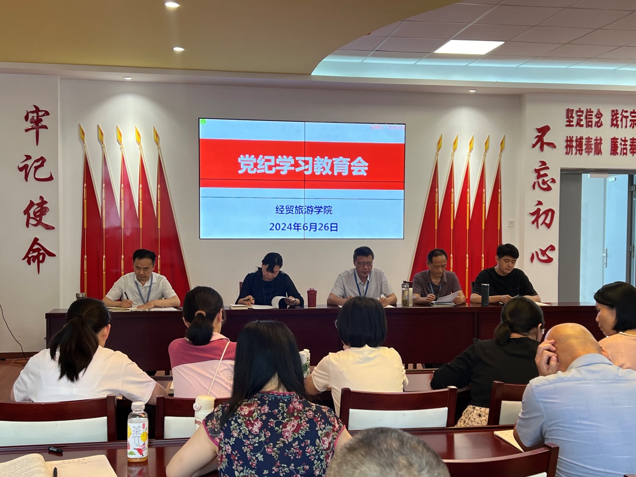 为持续深入开展党纪学习教育,落实校党委理论学习中心组会议精神,扎实推进学期末各项重点工作,6月26日下午,ac米兰官网中文网站于党性体验馆召开党纪学习教育会和期末重点工作推进会,学院党政、全体教职工参加会议,会议由副院长陈继林主持。