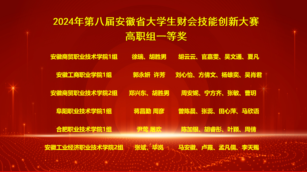 11月24日上午,由安徽省教育厅主办的“2024年安徽省大学生财会技能创新大赛”在铜陵学院圆满落下帷幕。经过激烈角逐,我校ac米兰官网中文网站选派的由陈加银、胡睿彤、周倩、叶颖四位同学组成的参赛队在55支参赛队伍中排名第五,取得了一等奖的好成绩。