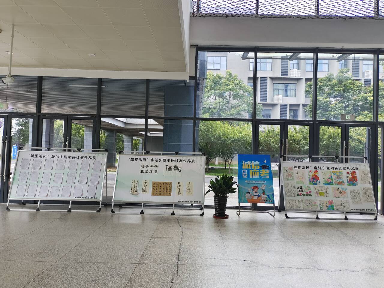 活动启动后,师生踊跃参与。大家紧扣“廉洁”主题,结合诚信考试周,挥毫泼墨、精心创作。展出的作品题材丰富,形式多样,涵盖硬笔书法、软笔书法及绘画三大类别,共计58件精品力作。硬笔书法笔力遒劲,彰显规矩方圆;软笔书法墨韵悠长,传递清廉意境;绘画作品构思巧妙,寓意深刻。作品内容或取材于廉洁历史典故,或摘录自廉政格言警句,或反映现实生活中的廉洁实践,充分展现了经贸师生对廉洁文化的深刻理解和艺术表达,将抽象的廉洁理念转化为可触可感的艺术形象。