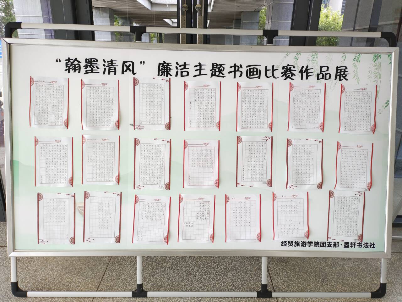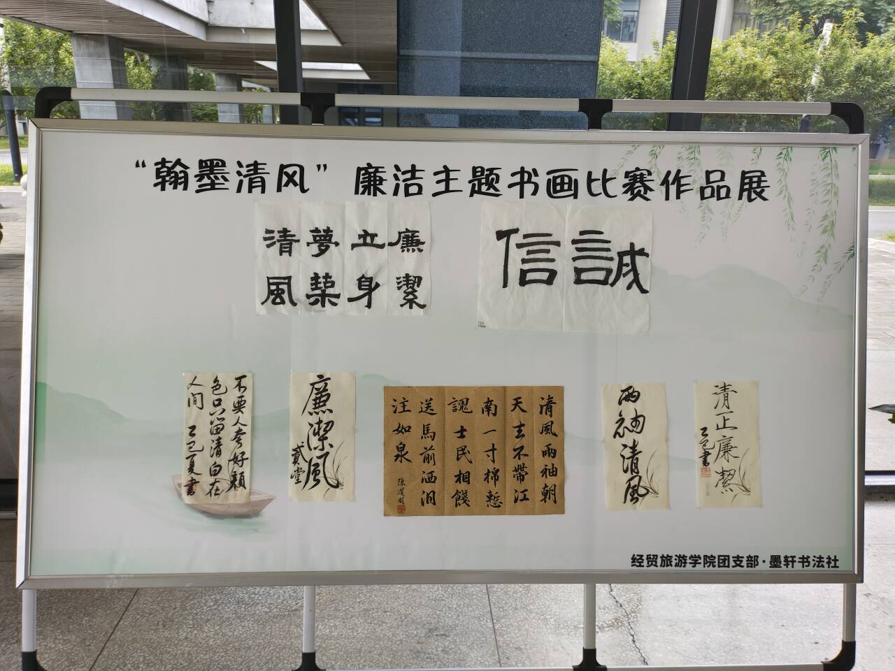 本次“翰墨清风”书画作品展的成功举办,不仅为具有书画特长的师生提供了展示才华的平台,更是学院创新廉洁教育载体、丰富廉洁文化内涵的重要举措。通过将廉洁文化与中华优秀传统书画艺术深度融合,学院以师生喜闻乐见的形式,有效引导广大师生员工崇廉尚洁、修身律己。活动有力推动了廉洁教育融入校园文化生活和师生日常,让清廉之风吹遍校园每个角落,持续为学院高质量发展注入强大的“廉动力”,为落实立德树人根本任务、培养德才兼备的高素质经旅人才筑牢坚实的廉洁根基。