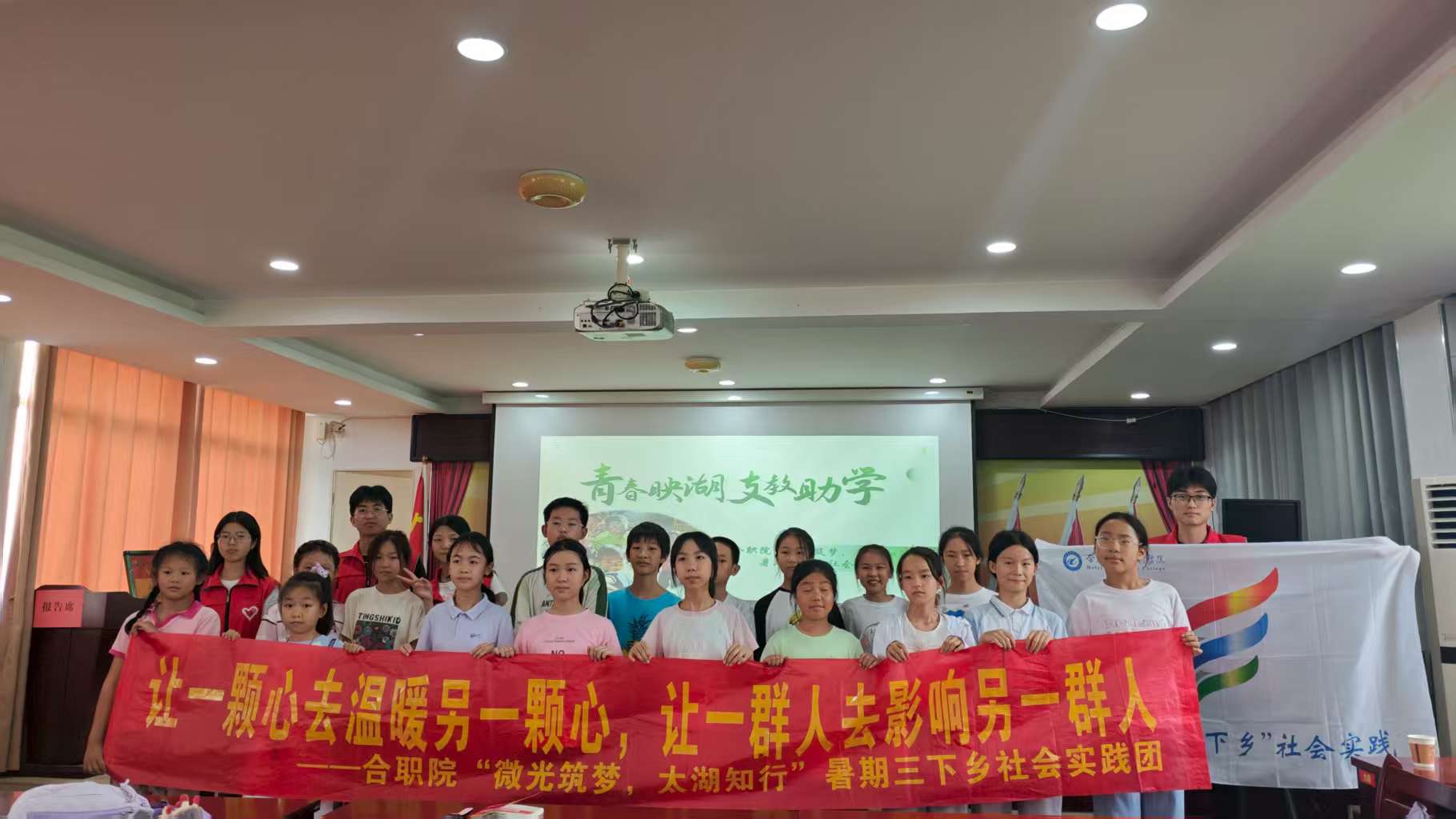 短短数日,从彩绘乡愁到科学探索,从知识启蒙到精神传承,合职院青年以热忱的行动诠释了何为“以心传心,以行践梦”。他们如微光汇聚,不仅照亮了乡村课堂,更在孩子们心中点燃了探索未知、热爱家国的不灭心火,当教育之光照亮田野,乡村振兴的种子便已在未来一代的心底扎根萌发,静待参天。此次深入太湖大石乡的支教之旅,不仅是一次知识的传递,更是一场爱与希望的双向奔赴。同时,这段宝贵的经历也让合职学子在实践中锤炼意志品质、提升综合素质、厚植家国情怀!最后,实践团也会持续关注大石乡的留守儿童,做到帮扶不断线、关爱可持续,让青春之花在服务国家、奉献社会的生动实践中持续绽放绚丽光彩!