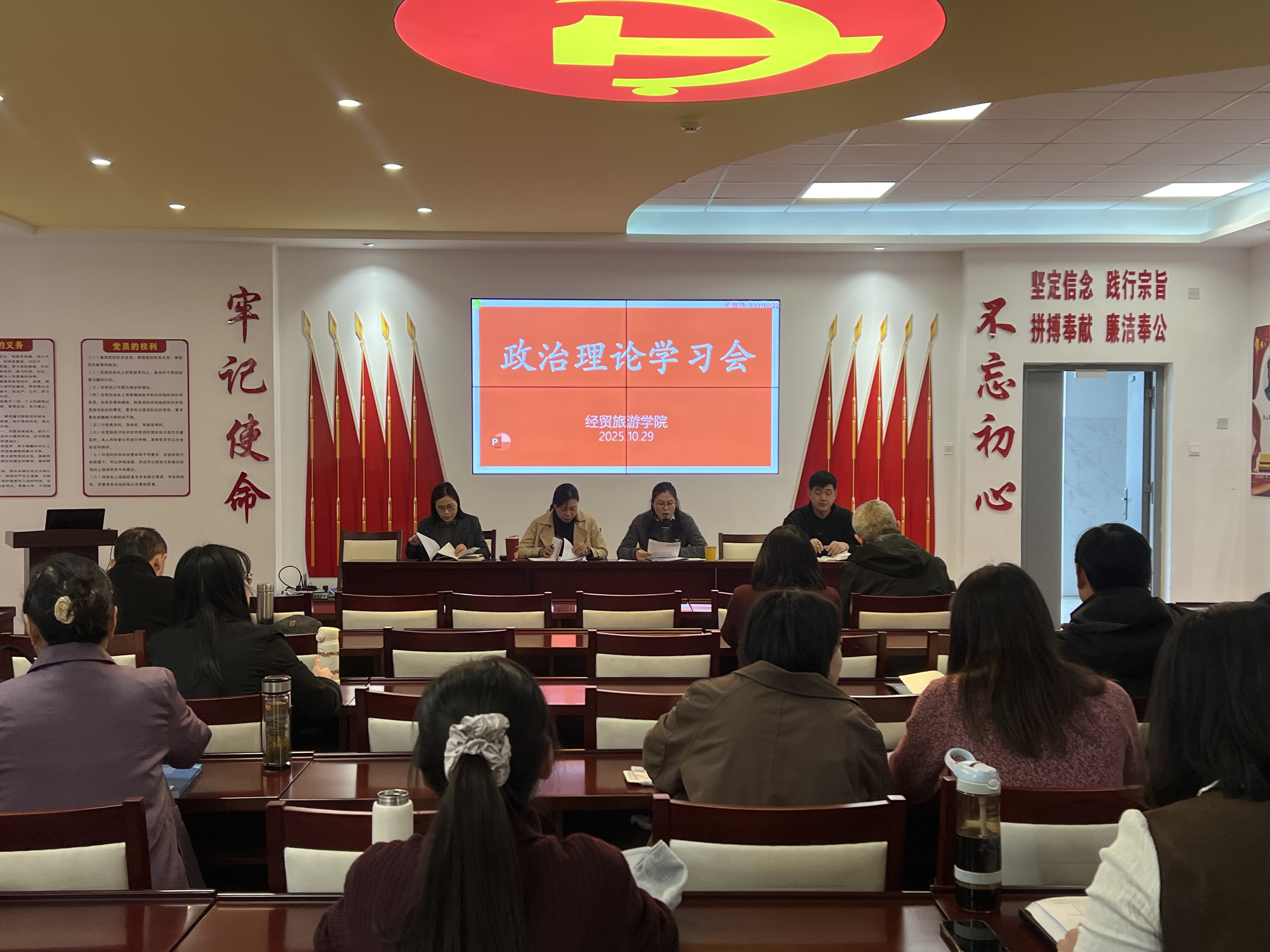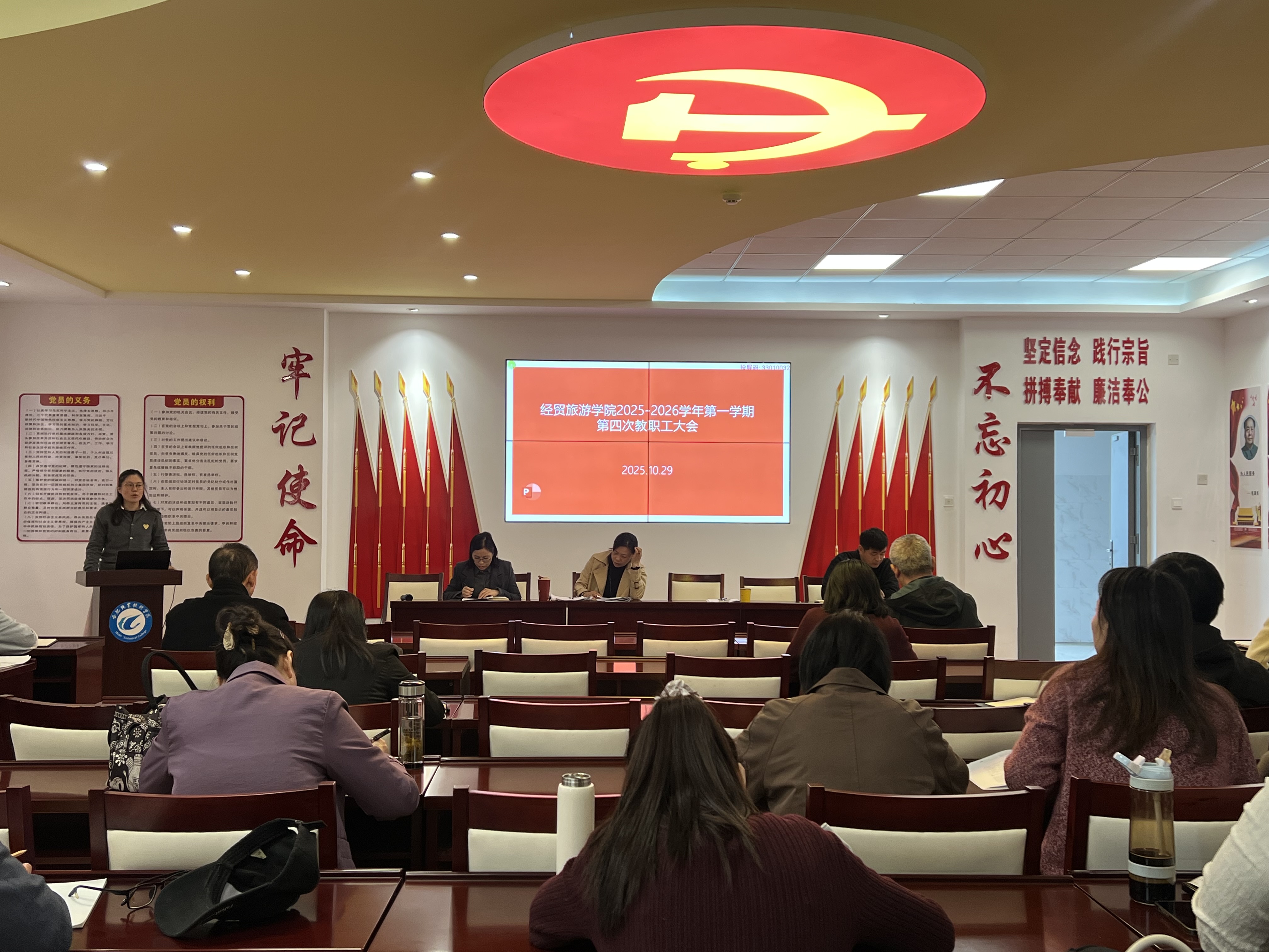 10月29日下午,ac米兰官网中文网站在党性体验馆召开政治理论学习会暨新学期第四次教职工大会。全体教职工参加会议,会议由副院长付晓兰主持。