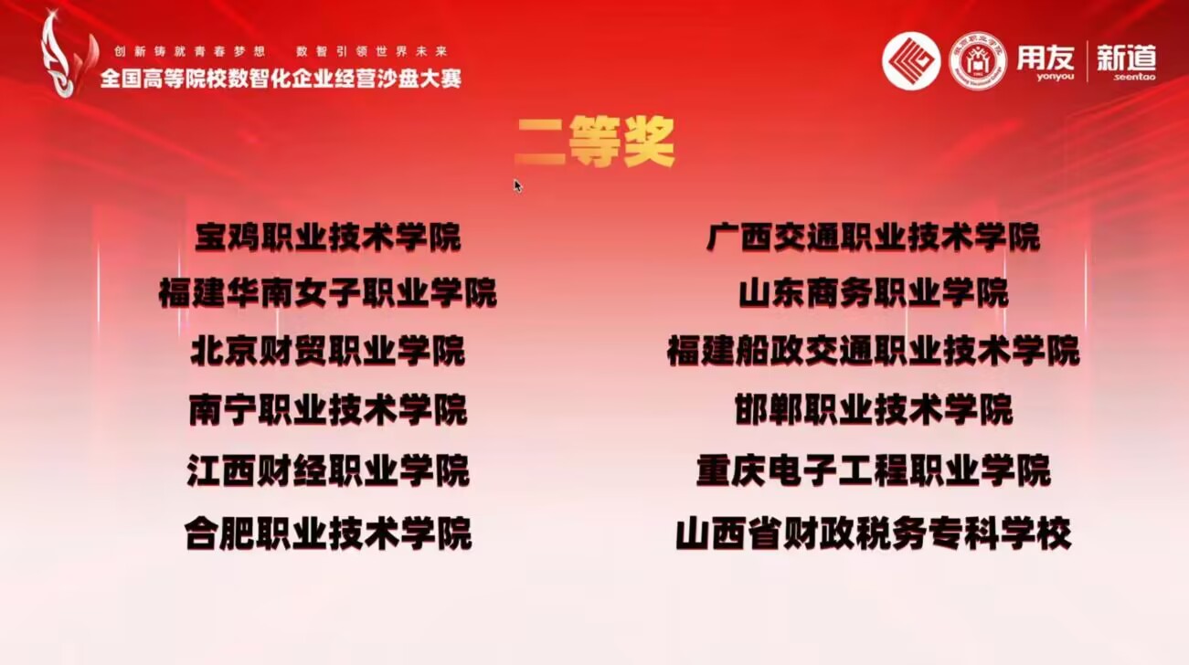 11月5日,全国高等院校数智化企业经营沙盘大赛(高职组)全国总决赛在线上举行,来自全国各地的116支代表队同台竞技。在比赛过程中,我校ac米兰官网中文网站选派的刘思豪、朱镕铭、贾欣雅、郭方周团队齐心协力,沉着应对复杂市场营销环境,凭借稳定出色的发挥,总排名位列第18位,取得全国二等奖的好成绩。