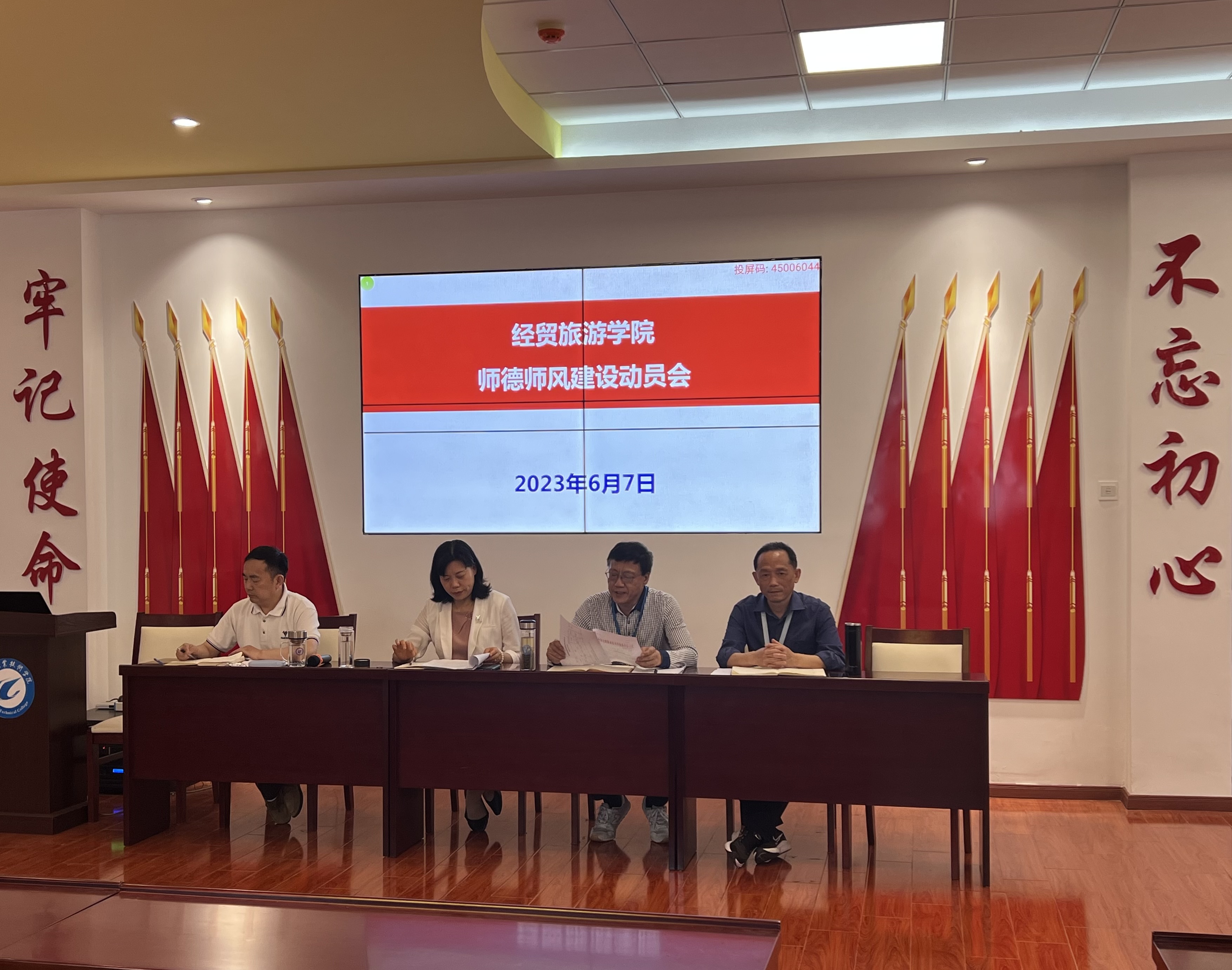会议第二阶段,开展师德师风建设总动员。梅亚松宣读了《合肥职业技术学院师德师风建设专项排查治理工作方案》,并就动员部署、学习教育、自查整改和总结提升四阶段工作进行详细落实;陈继林领学《安徽省高等学校教师师德失范行为处理办法(试行)》,他要求,学院全体教职工要深刻领会文件精神,严守“底线”,不越“红线”,规范从教,恪尽职守,共同筑起ac米兰官网中文网站师德师风的良好防线。