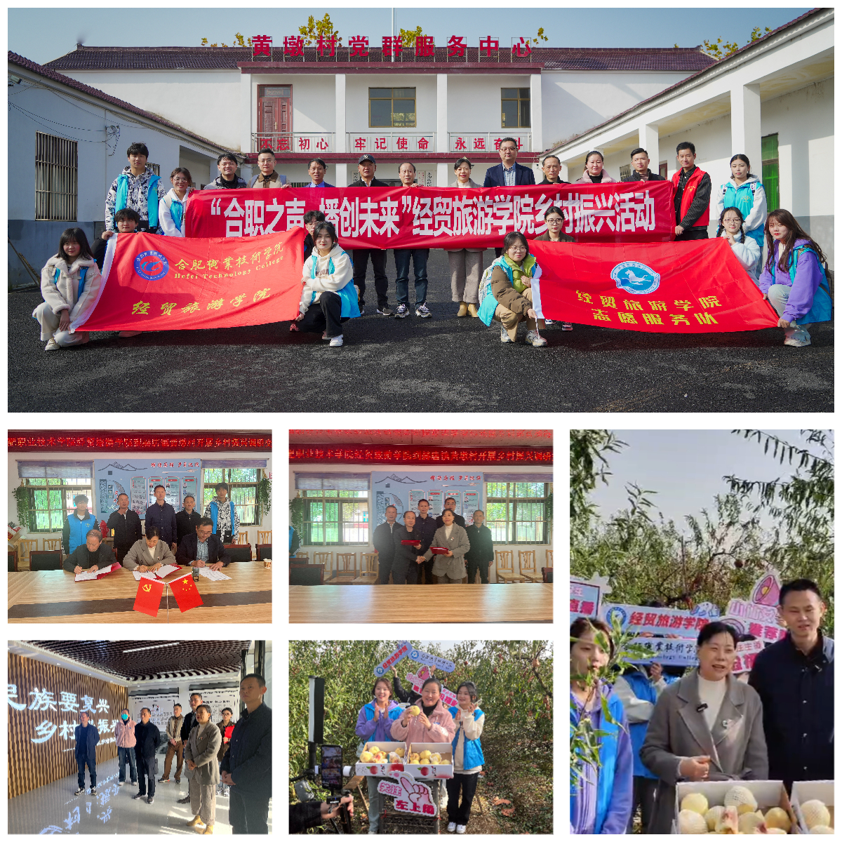 11月16日,合肥职业技术学院ac米兰官网中文网站的师生来到无为市赫店镇黄墩村,开展电商直播带货助农活动,帮助农民销售当地优质水果——冬桃。