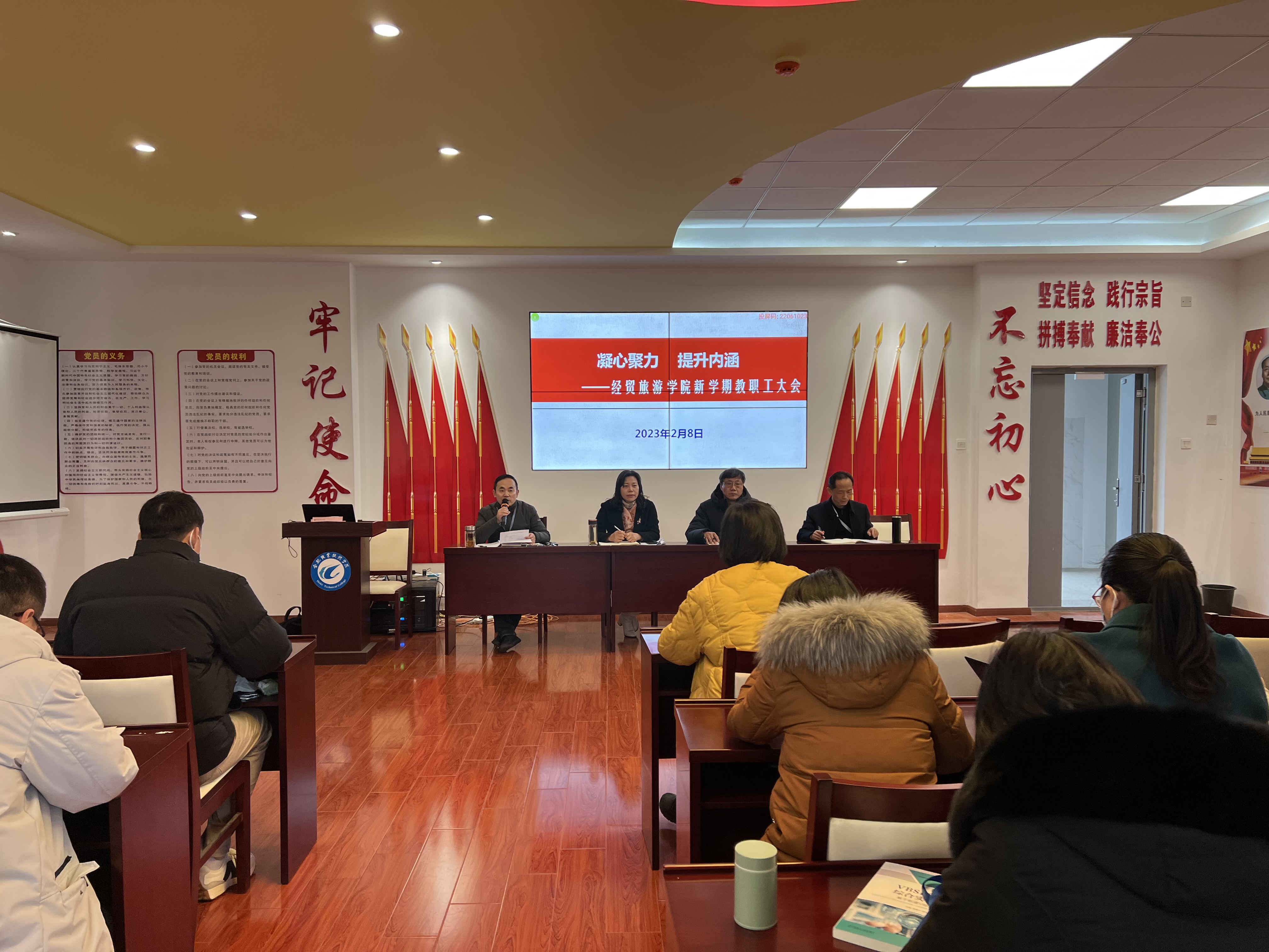 为推动新学期工作有序、高效开展,2月8日下午,ac米兰官网中文网站在党性体验馆召开了以“凝心聚力、提升内涵”为主题的教职工大会,学院党政和全体教职工参会,会议由副院长陈继林主持。