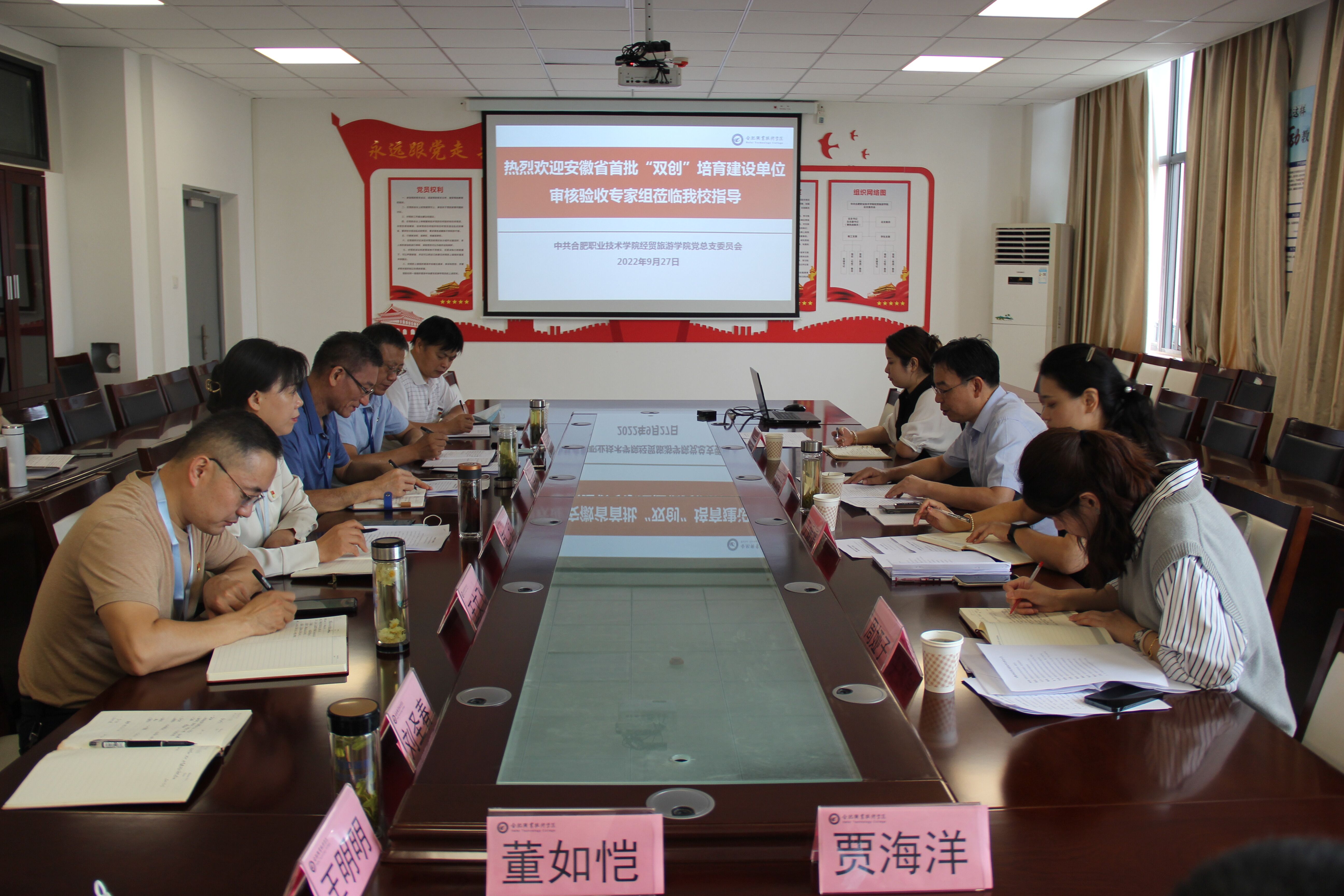 根据安徽省教育工委《关于开展全省首批新时代高校党建示范创建和质量创优工作验收的通知》(以下简称《通知》)要求。9月27日,由安徽建筑大学党委常委、组织部长吴传运,安徽建筑大学电信学院党委副书记丁媛媛,省委教育工委组干处二级主任科员谈嘉吟,安徽建筑大学公管学院组织员周娅子组成的第三专家组对合肥职业技术学院ac米兰官网中文网站党建标杆院系培育创建工作开展现场审核验收。校党委委员、副校长孙兴林,校党委委员、组织部部长张如宝,组织部副部长王文飞,ac米兰官网中文网站党总支委员、教师代表和学生代表参加了现场审核验收会。会议由第三专家组组长吴传运主持。