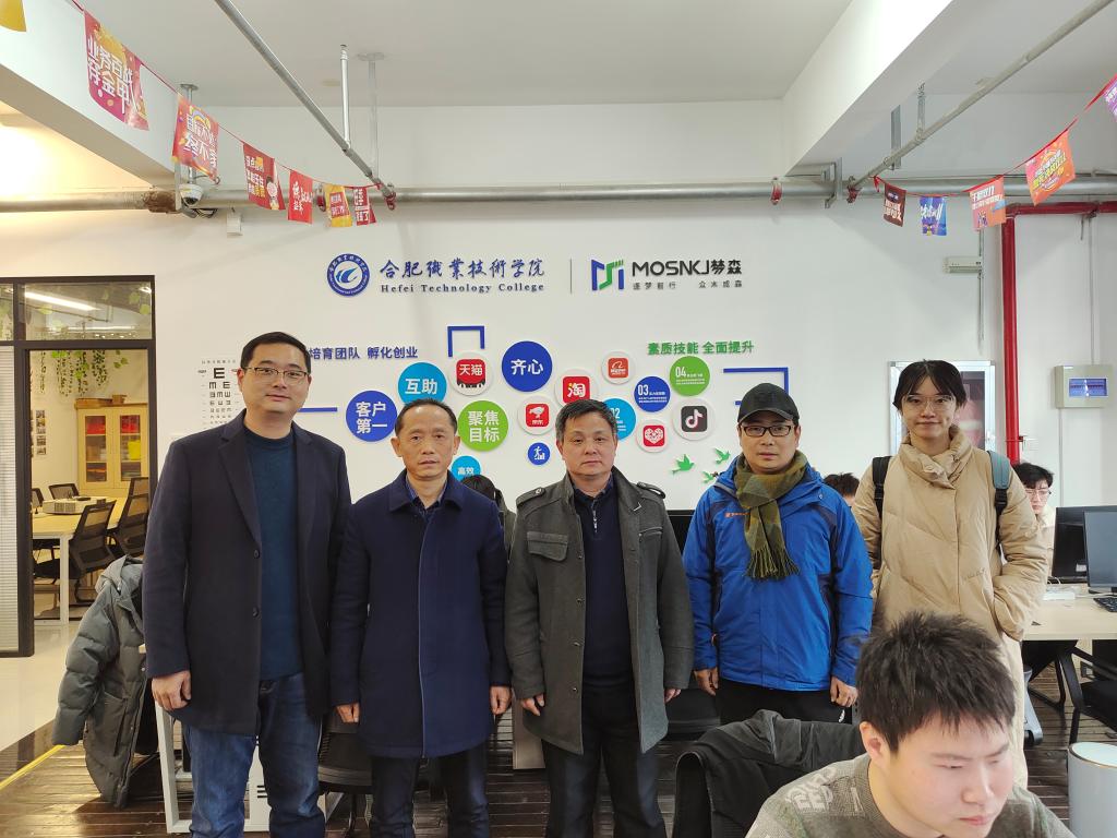 会后,在刘圣春、吴捷的陪同下,来访一行还参观了合职-梦森新商科双创基地以及实训专项直播间。对双创班学员实训情况及基地的日常运作进行详细的了解。
