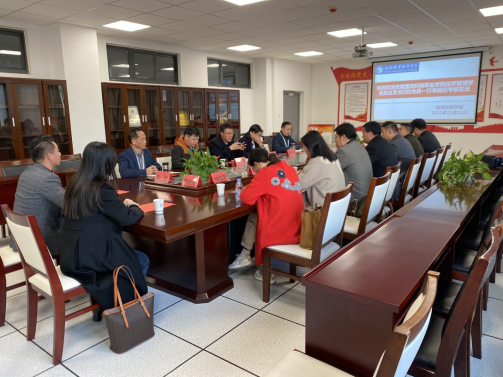 11月11日,安徽国防科技职业学院经贸管理学院党总支书记杜先扬、院长杨力、上海理想人力资源有限公司合肥服务中心总经理赵中华一行9人来我院考察交流。ac米兰官网中文网站党总支书记梅亚松、院长赵红、副书记尹仕果、副院长陈继林、刘圣春在经贸楼会议室接待了来访客人。交流会由尹仕果主持。