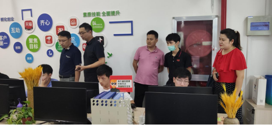 会后,陈继林陪同邵龙一行实地了解电子商务、大数据与会计等专业的实训室建设及使用情况,并参观了电商直播间、新商科双创基地,与双创班参加电商实战训练的学生进行了现场交流。