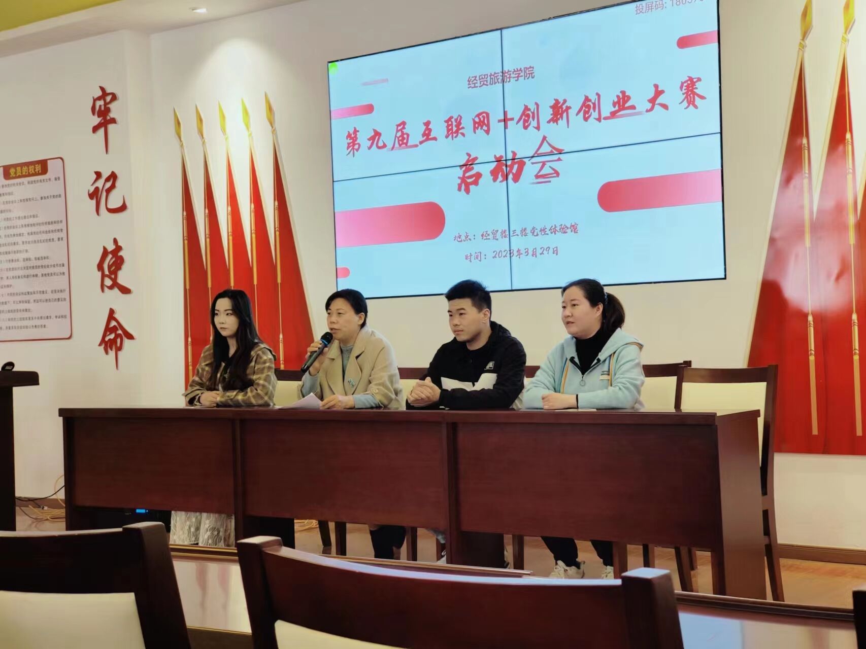 3月39日下午,ac米兰官网中文网站第九届“互联网+”大学生创新创业大赛启动会在学院党性体验馆顺利进行,会议由赵红院长主持,对“互联网+”创新创业大赛感兴趣的在校学生积极参加会议。会议同时邀请了去年学院内获得省赛银奖和金奖的项目负责人,以及安徽农业大学国赛金奖项目负责人潘浩宇,皖西学院国赛铜奖项目负责人陈抒语同学进行项目路演。