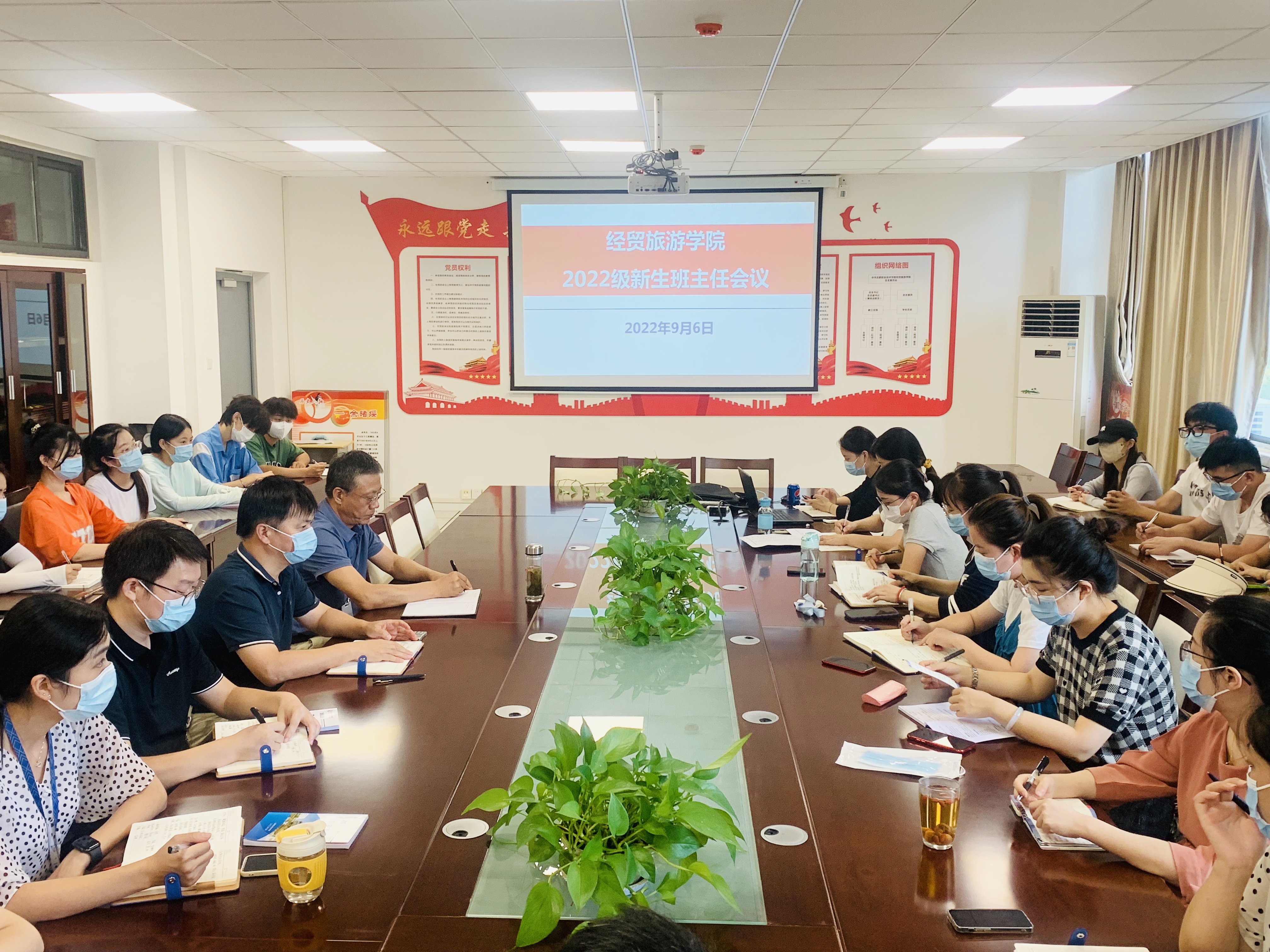 为迎接2022级新生入学报到工作,ac米兰官网中文网站于9月6日下午在经贸楼三楼学院会议室召开2022级新生班主任会议,会议由学院党总支副书记尹仕果主持。学院党总支书记梅亚松、学院学管办全体专职辅导员、全体22级新生班主任和22级新生班主任助理出席了本次会议。