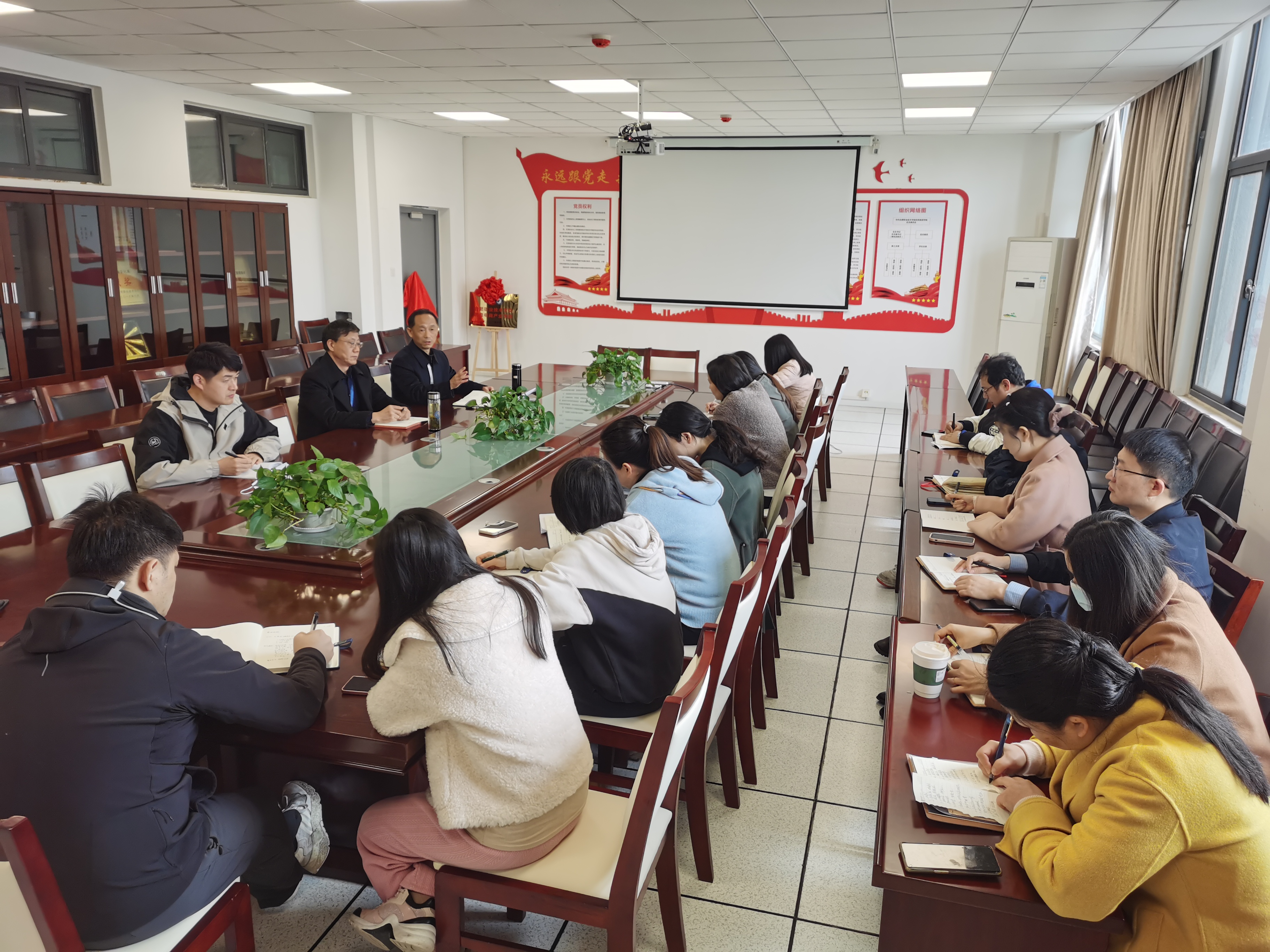 刘圣春就学院2021级学生实习工作工作作了重点提示和安排,要求全体辅导员要尽职尽责,廉洁自律,平时要深入学生群体,加强和学生沟通交流,做好学生思想动态排查工作。
