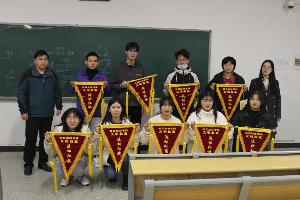 为了鼓励先进,促进校园精神文明建设,我院于11月24日,在南楼111教室举行流动红旗的颁奖仪式。获得本次流动红旗的班级有20审计班、20会计5班、20互联网金融班、20旅游管理1班、20会计6班、20会计3班、20中美合作班、20电子商务班和20会计1班等九个班级。所有20级新生班级的班长、劳动委员都参加了此次仪式。学院党总支副书记尹仕果为获得表彰的班级授予卫生流动红旗。