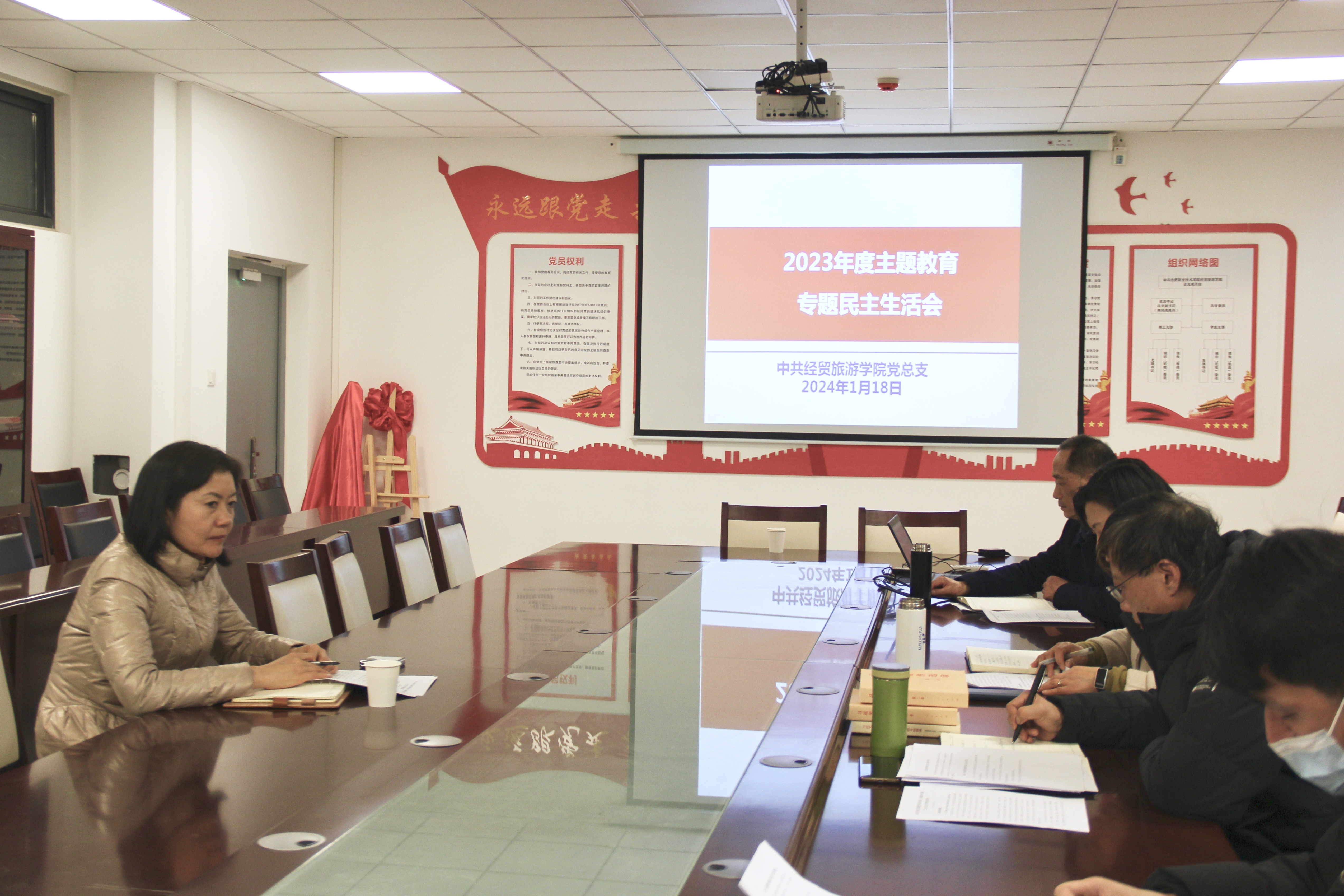 1月18日下午,ac米兰官网中文网站党总支在经贸楼党员活动室召开主题教育民主生活会,学院党总支班子全体成员参加会议,副院长陈继林列席会议,学校党委副书记金飞燕到会指导并点评。会议由党总支书记梅亚松主持。