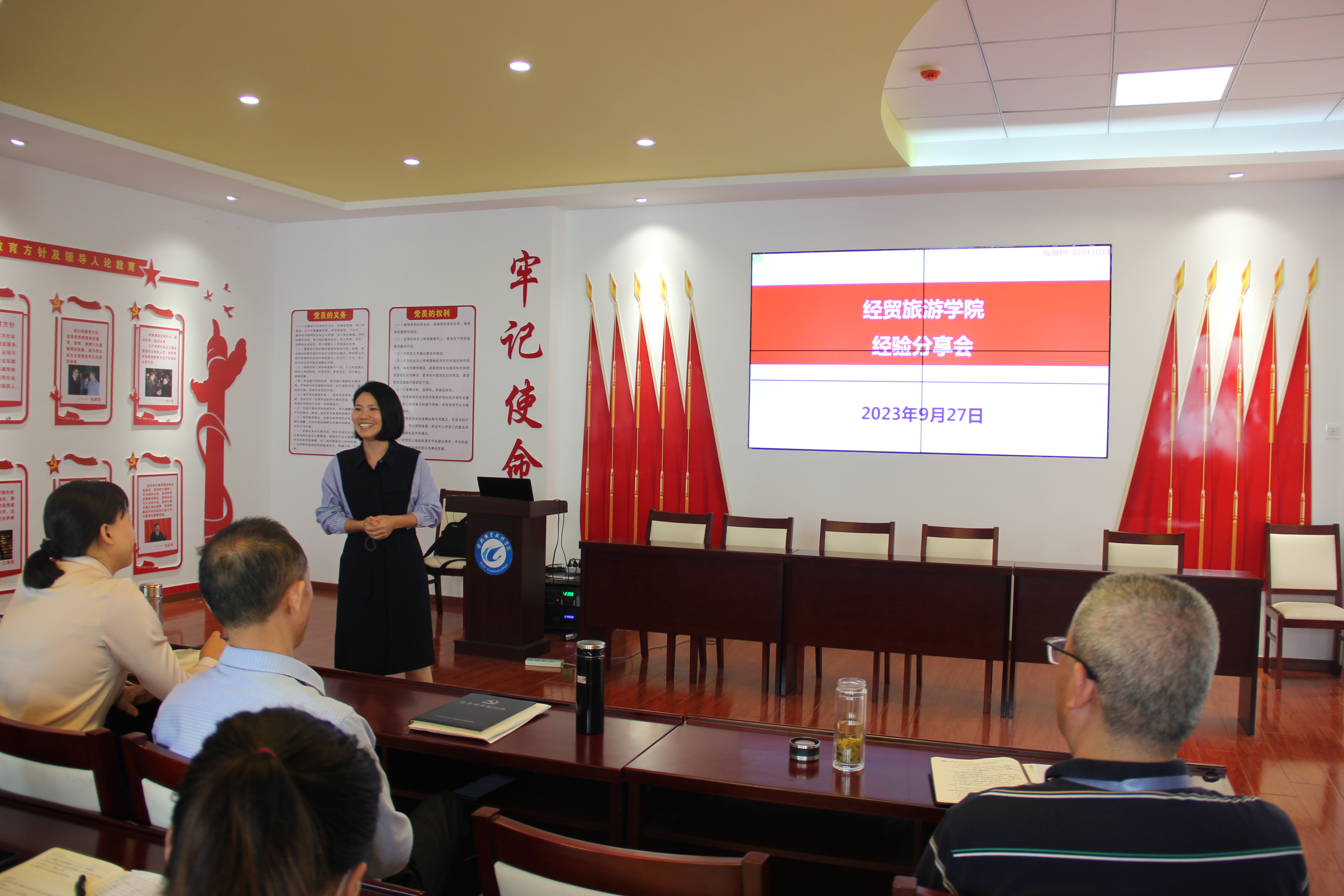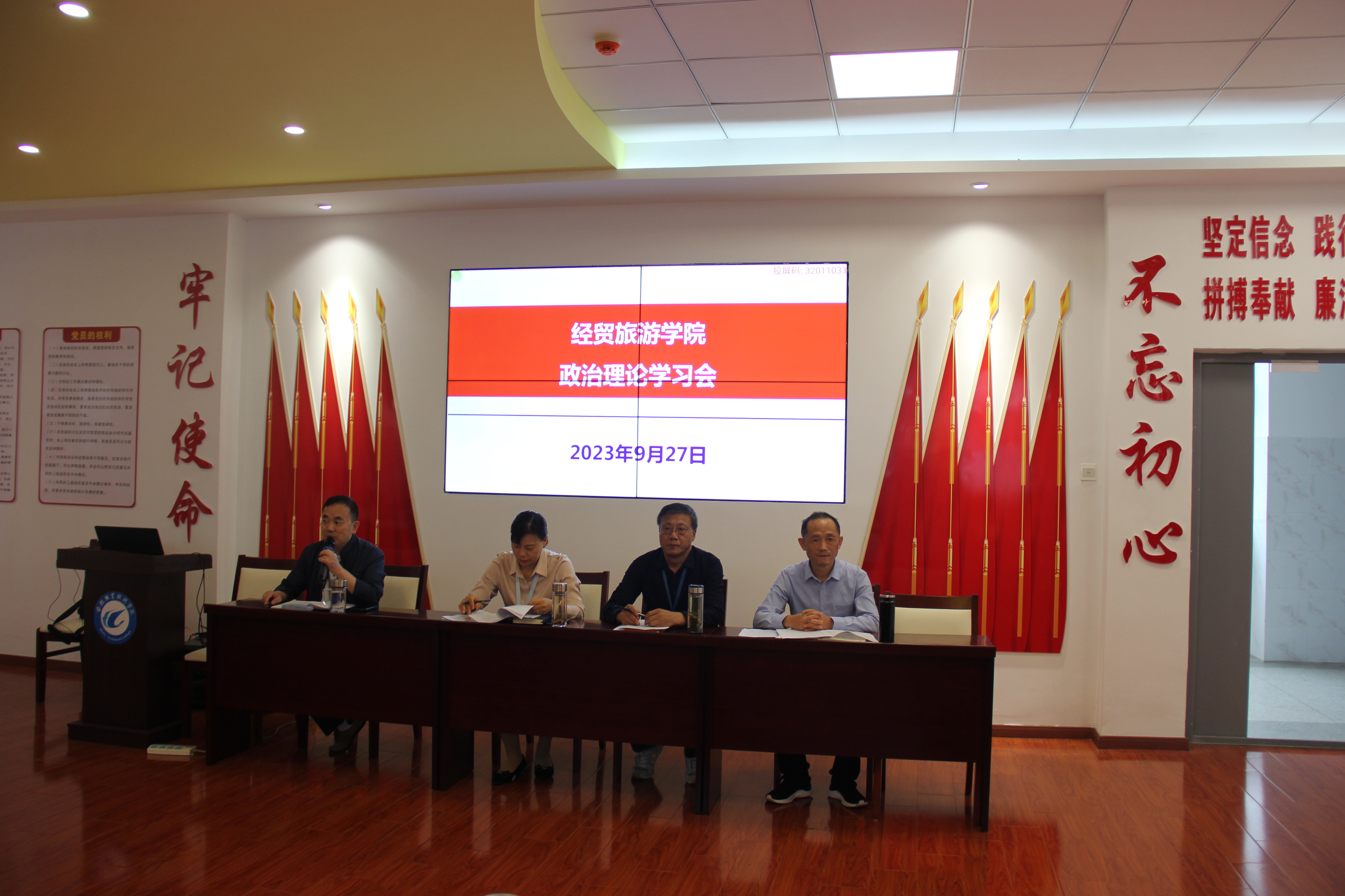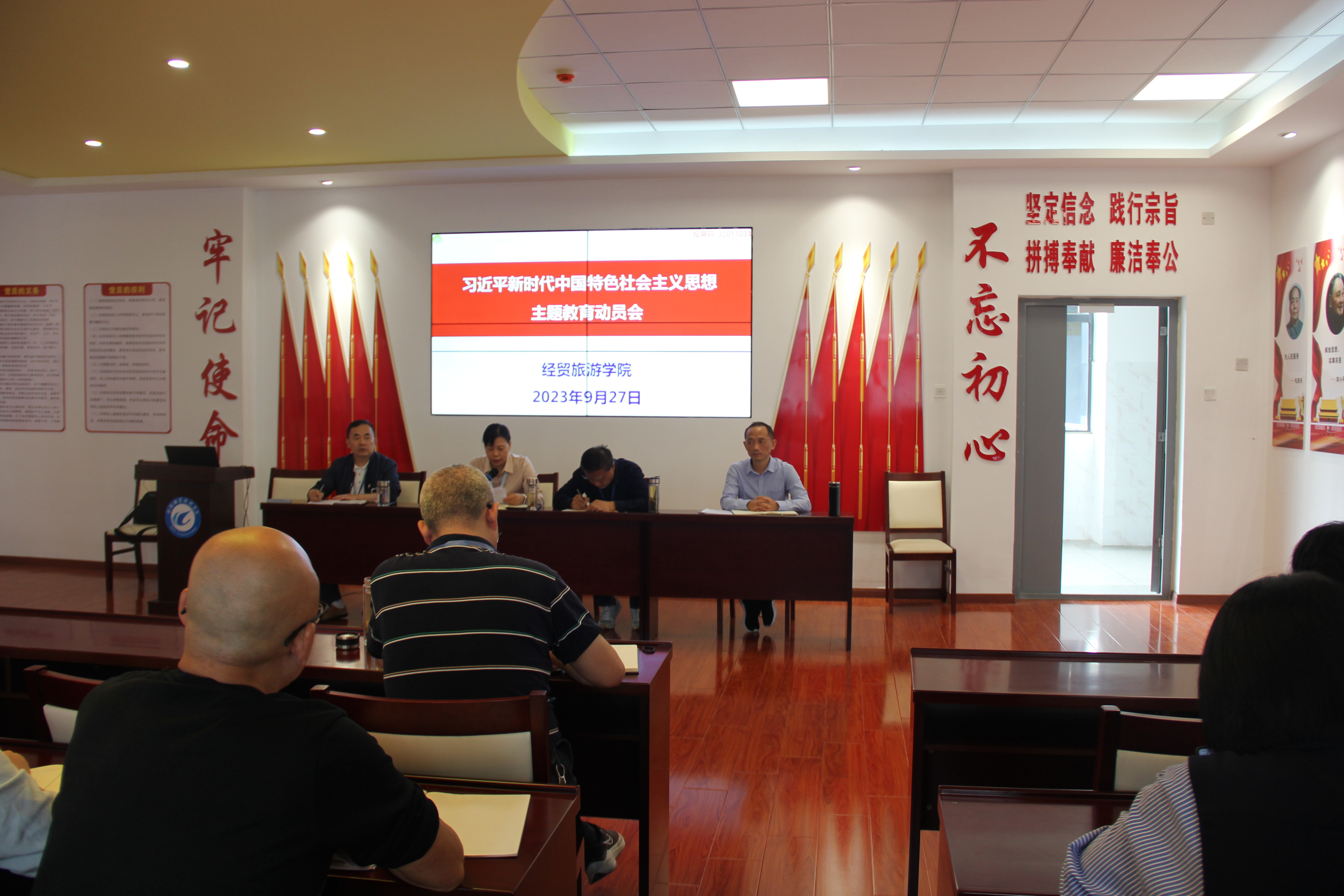 2023年9月27日下午,ac米兰官网中文网站在党性体验馆召开政治理论学习会暨学习贯彻习近平新时代中国特色社会主义思想主题教育动员大会。学院党政和全体教职工参加会议,会议由副院长陈继林主持。