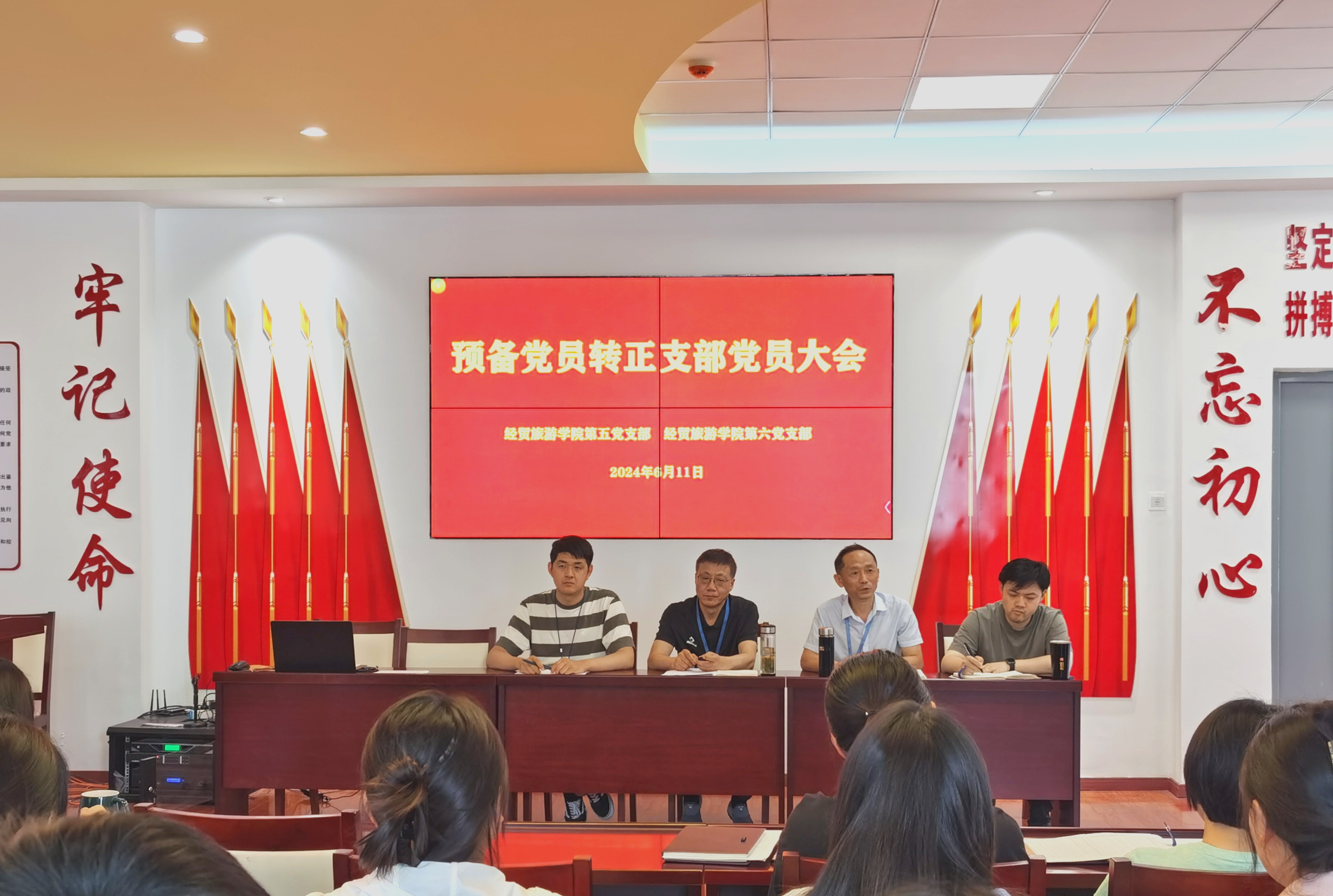 6月11日下午,ac米兰官网中文网站第五党支部、第六党支部在经贸楼三楼党性体验馆分别召开党员大会,讨论罗元航等30名预备党员的转正事宜。大会由王明明同志主持,两个支部的全体党员参加了大会。