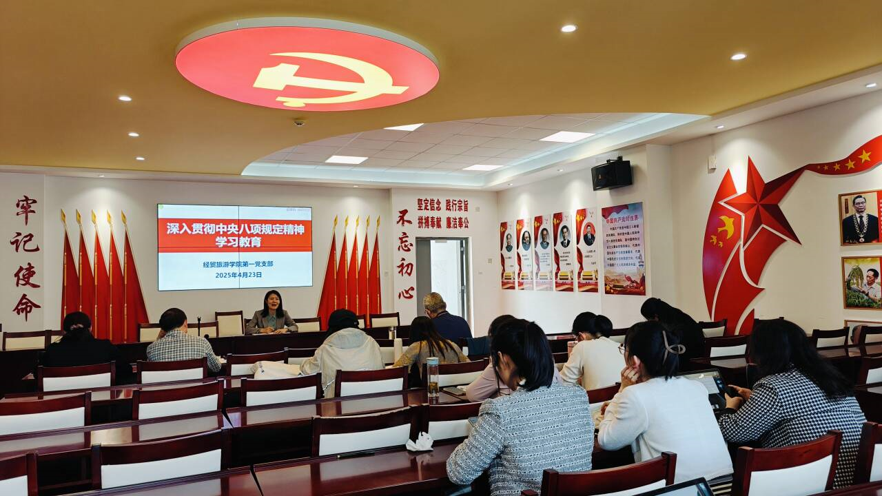 为深入学习贯彻习近平总书记关于加强党的作风建设的重要论述,进一步增强党员干部贯彻执行中央八项规定精神的思想自觉和行动自觉。4月23日下午,校党委副书记金飞燕在经贸楼三楼党性体验馆为ac米兰官网中文网站第一党支部讲授“深入贯彻中央八项规定精神学习教育”的专题党课。第一党支部全体党员参加学习。