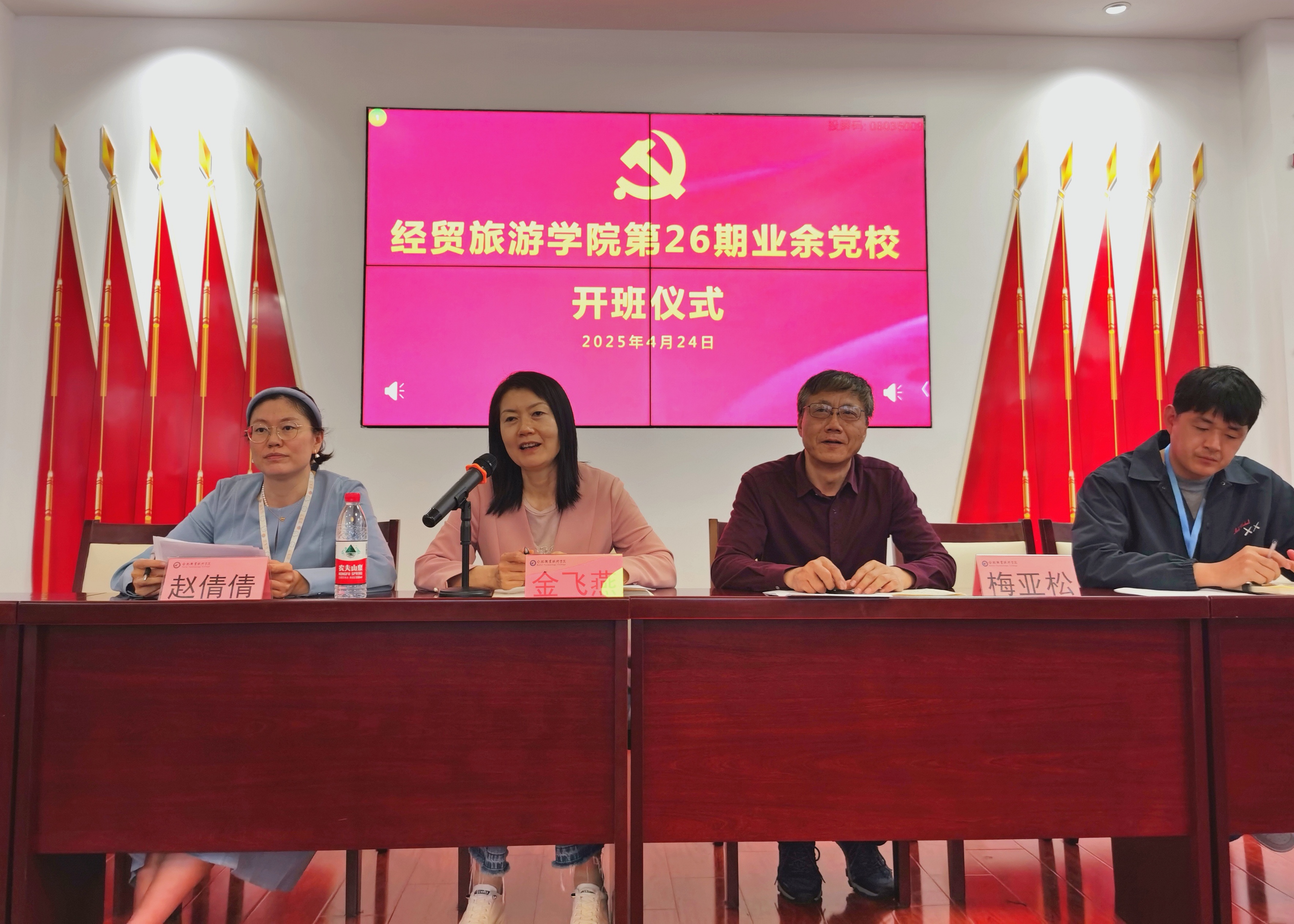 为深入学习贯彻习近平新时代中国特色社会主义思想,加强对入党积极分子的培养和教育,4月24日下午,ac米兰官网中文网站在经贸楼三楼党性体验馆举行第26期业余党校开班典礼。校党委副书记金飞燕、学院党总支书记梅亚松、党总支副书记赵倩倩、党总支委员、第六党支部书记王明明和本期业余党校的全体学员出席了开班典礼。