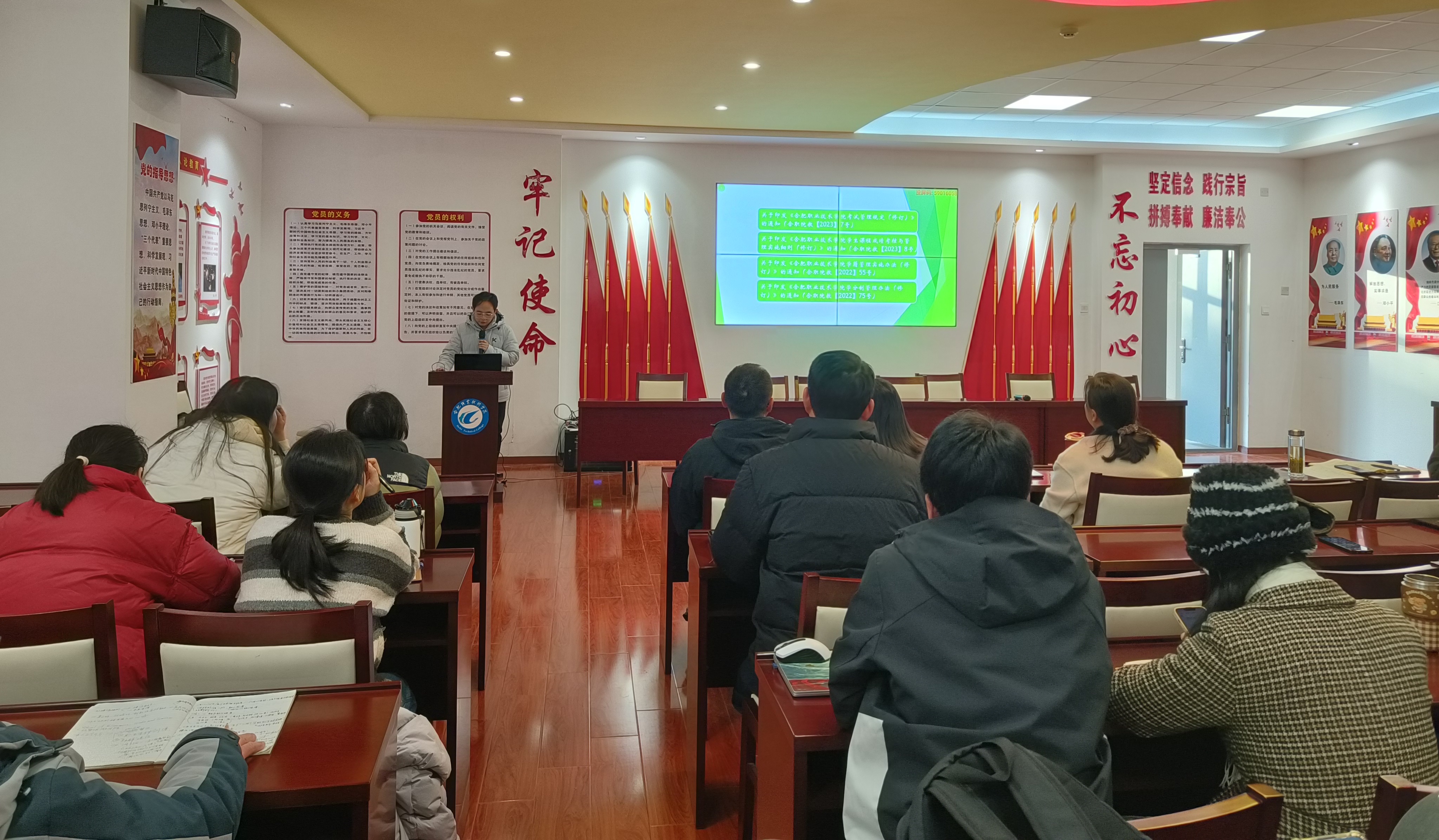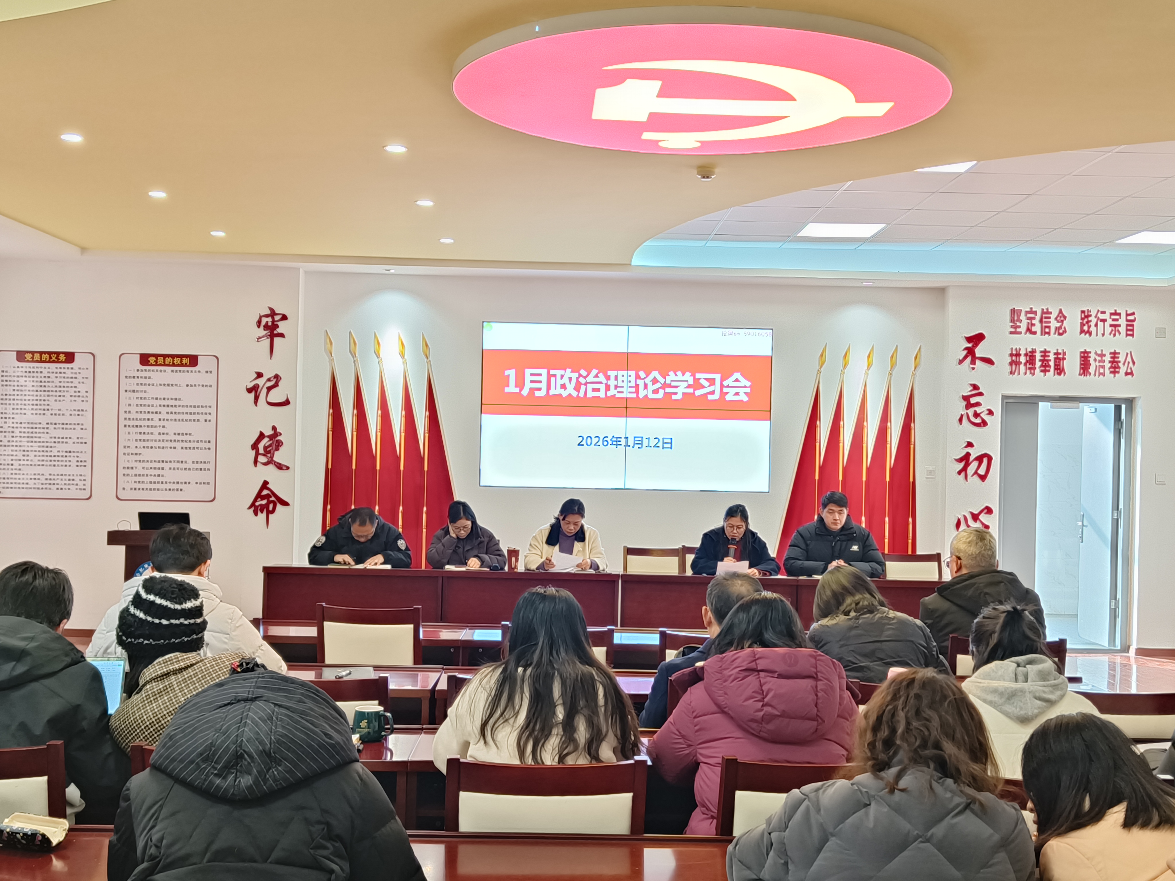 1月12日下午,ac米兰官网中文网站在党性体验馆组织召开1月份政治理论学习会暨全体教职工大会,系统学习近期重要会议精神与工作部署。会议由副院长付晓兰主持,学院全体教职工参会。