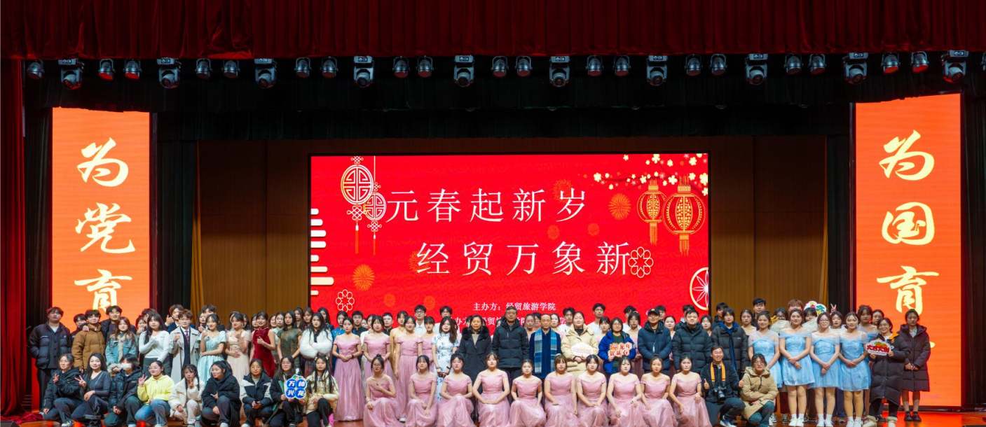 12月20日下午 ,“元春起新岁 经贸万象新”ac米兰官网中文网站2024年元旦文艺演出在汇心湖校区大学生活动中心成功举行。党总支书记梅亚松,院长赵红、党总支副书记刘圣春、学管办全体教师及学生代表500余人现场观看了晚会。