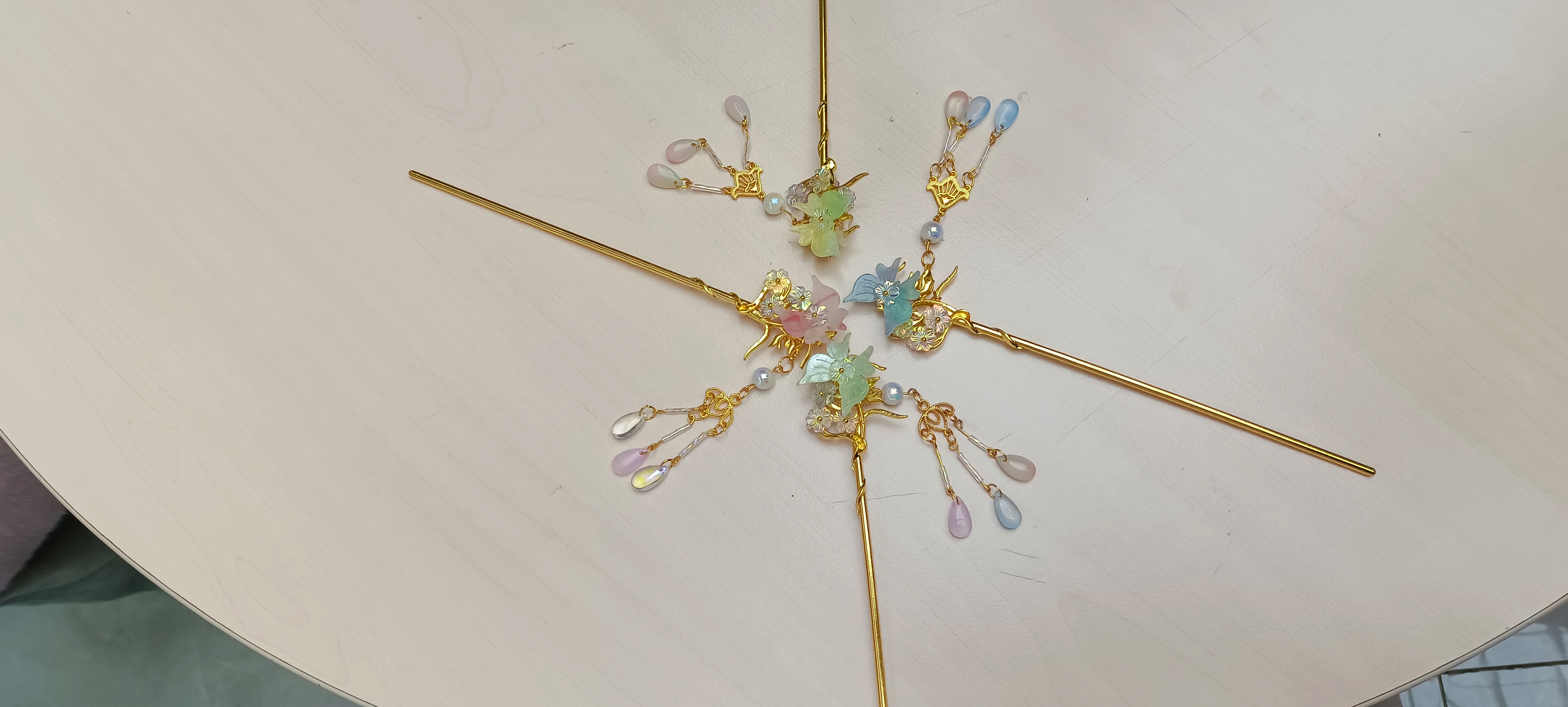 琉璃发簪本身是中华传统服饰文化的重要组成部分。琉璃发簪承载着古人的审美观念和工匠精神,通过制作琉璃发簪活动,有助于传承传统手工艺。在活动过程中,同学们可以学习到古代工匠们精心雕琢、巧妙设计的工艺手法,如怎样将琉璃塑形、如何用金属丝固定琉璃部件等,这些手工技艺在口传心授中得以延续。