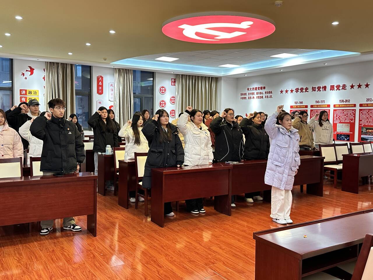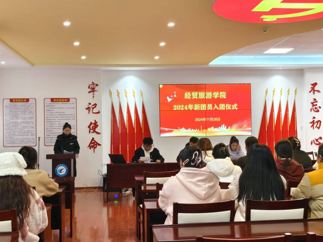 为坚定青年学生理想信念,引领团员青年永远跟党走,ac米兰官网中文网站团总支于2024年11月29日下午在经贸楼党性体验馆为新团员举行了入团仪式,此次仪式由杨昇同学主持。