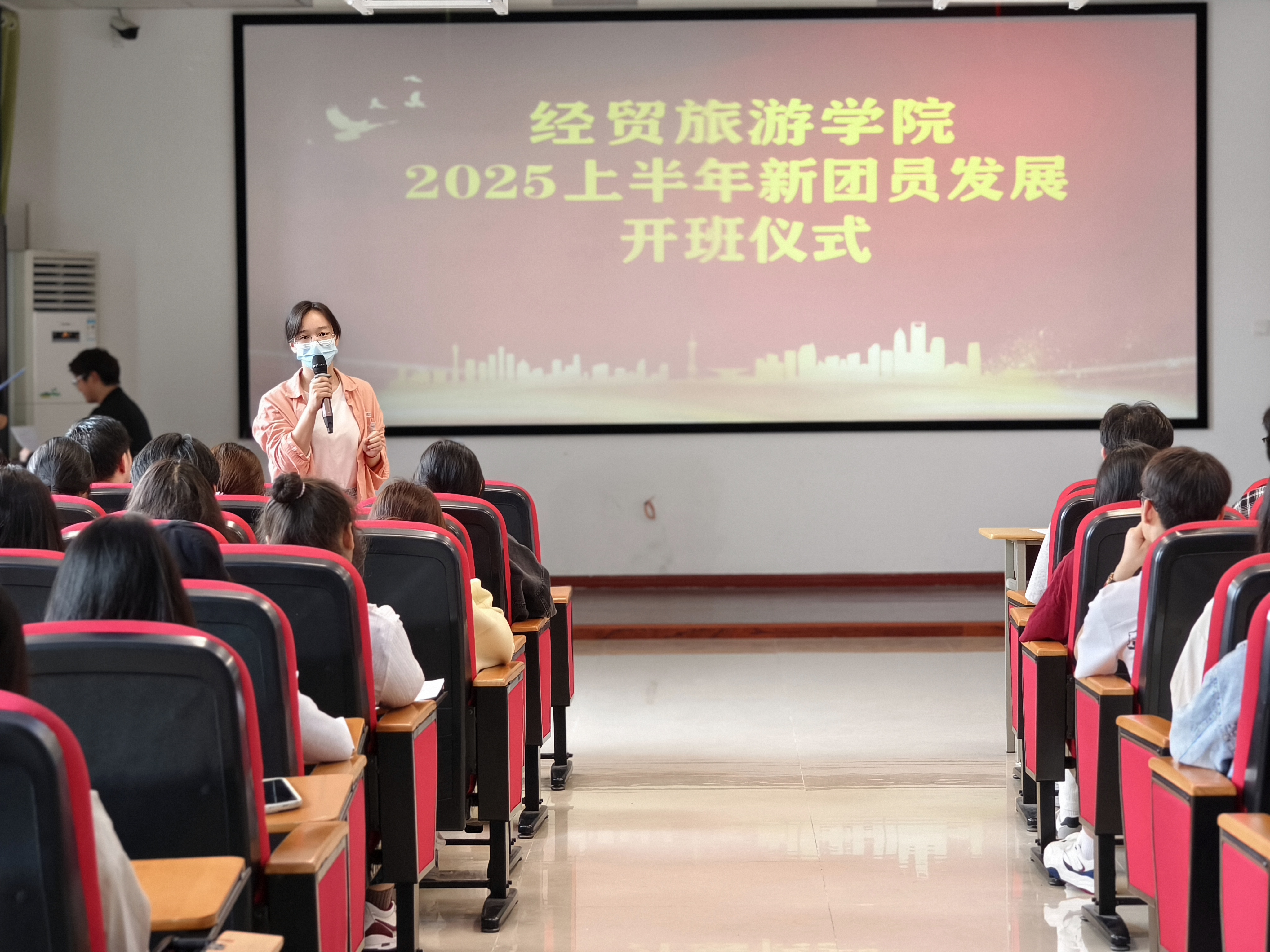 4月9日,ac米兰官网中文网站2025年团员发展培训班开班仪式在经贸楼导游实训室举行。该院团学组织负责老师孙紫娟,老团员代表和新发展团员等100余人参加仪式,共同见证新团员们的成长起点。